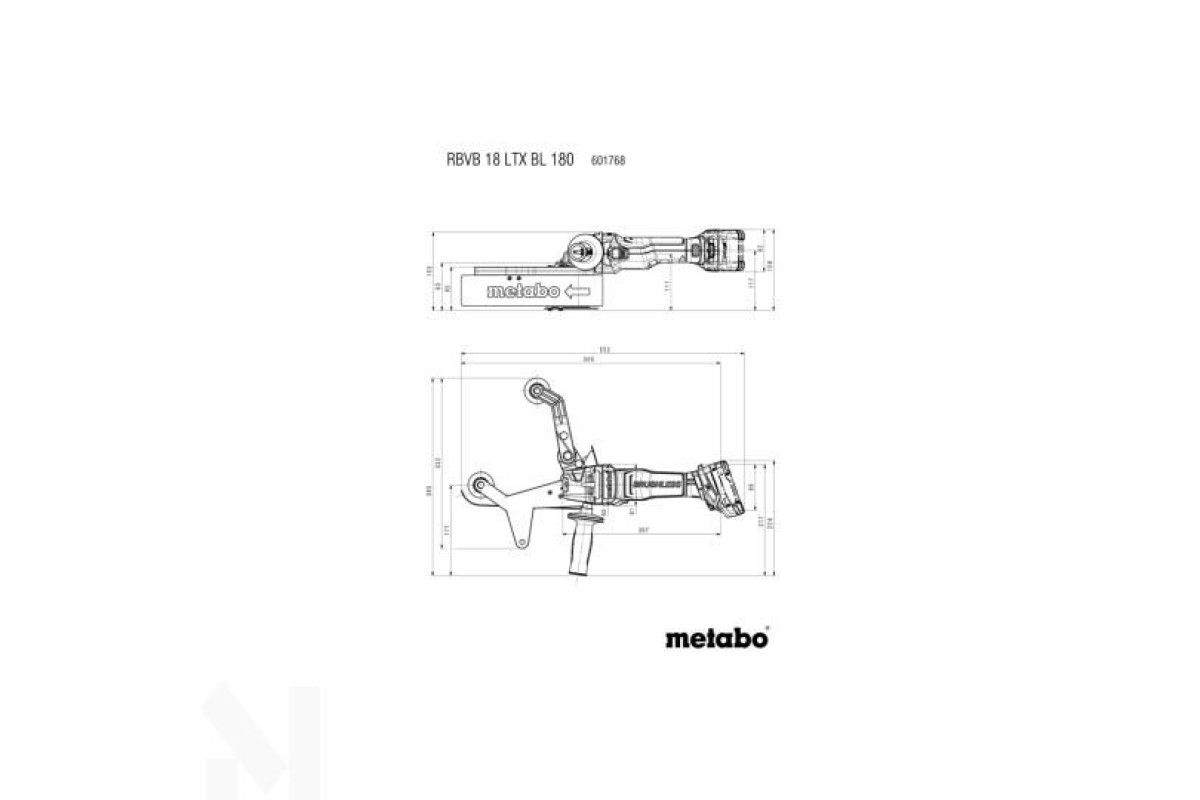 Акумуляторна шліфувальна машина для труб Metabo RBVB 18 LTX BL 180 каркасзастосовується для автономної роботи без мережі при шліфуванні та поліруванні металевих труб. Постачається без акумуляторних блоків і зарядного пристрою.