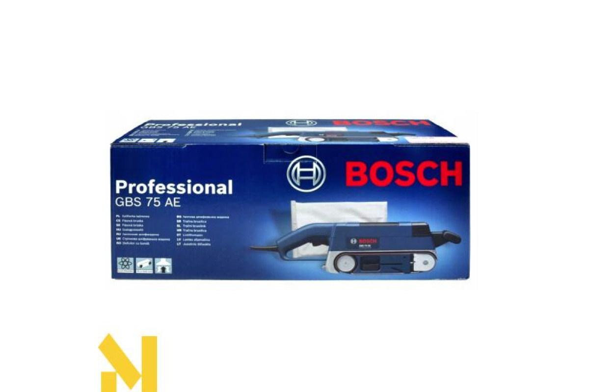 Стрічкова шліфмашина Bosch GBS 75 AE - економічна й ергономічна одночасно. Вона має знімну додаткову рукоятку для шліфування біля країв. Для позбавлення від пилу інструмент можна під'єднати до пилососа. Швидкість протягання стрічки становить 200-330 метрів за хвилину. Ширина шліфувальної стрічки дорівнює 75, а довжина - 533 мм. Порівняно невелика вагу, 3,4 кг, забезпечує меншу втомлюваність оператора.