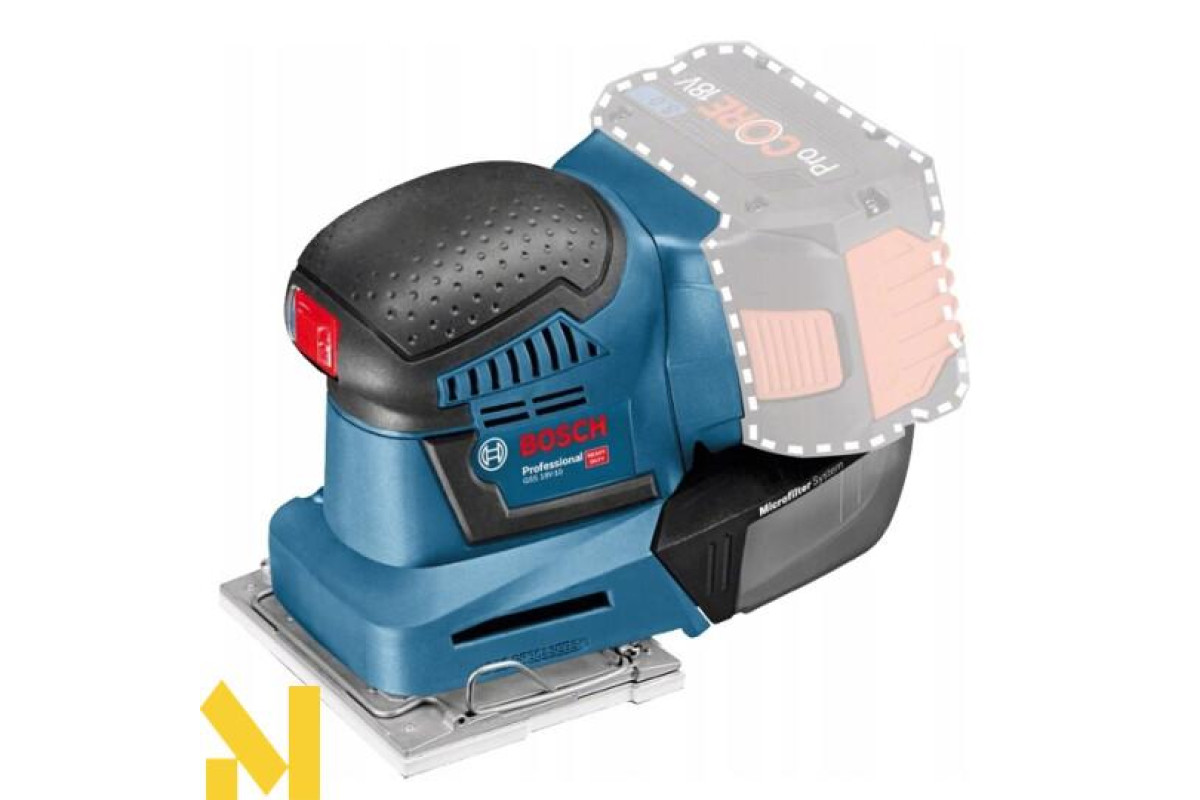 - Невелика (200 × 113 × 140 мм), легка (1,4 кг), практична віброшліфмашини Бош GSS 18V-10 з однією ручкою, функціонуючи від Li-Ion 18 В акумулятора, забезпечує бездротове, комфортне, якісне шліфування деревини, синтетичних матеріалів, лакофарбових поверхонь, шпаклівки. Нею дуже зручно працювати в важкодоступних місцях, шліфувати поверхні над головою.