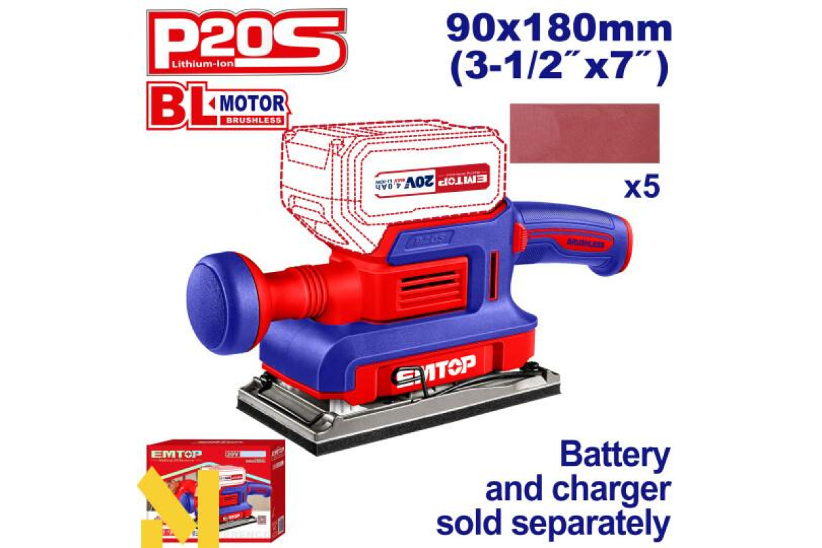 Шліфмашина вібраційна акумуляторна EMTOP ELFS2031