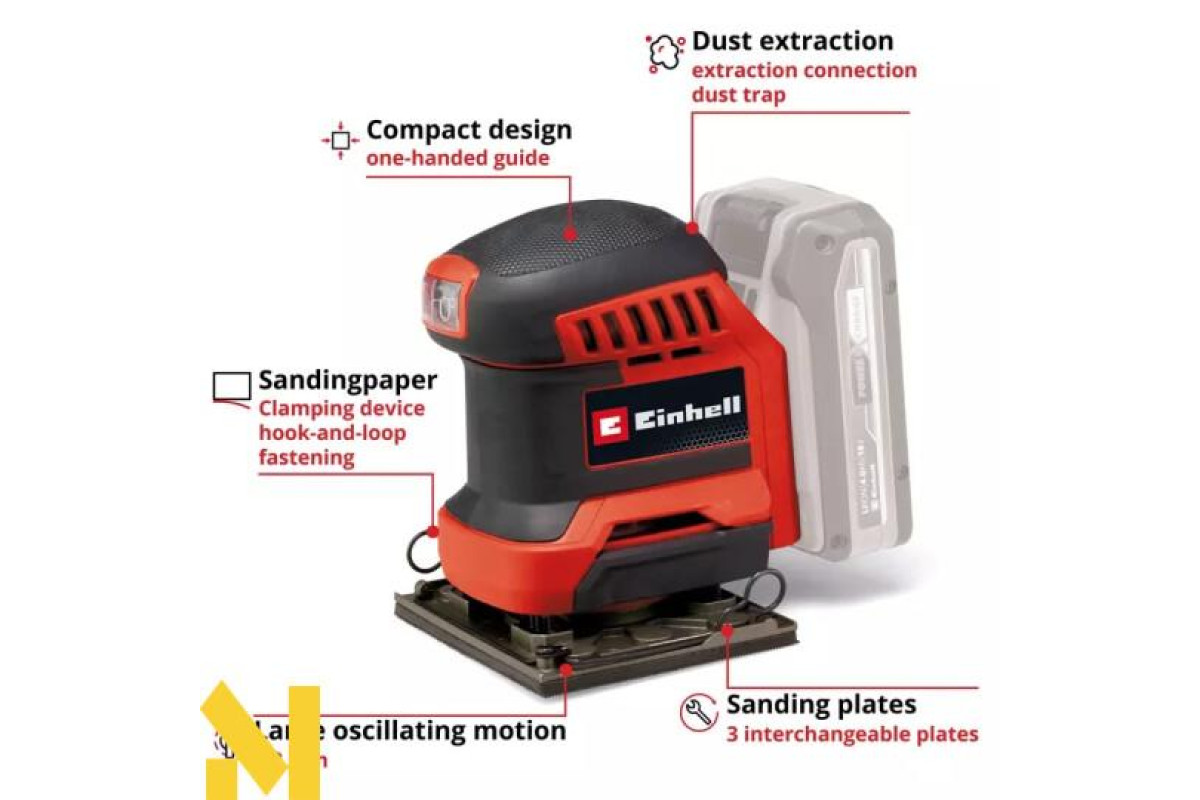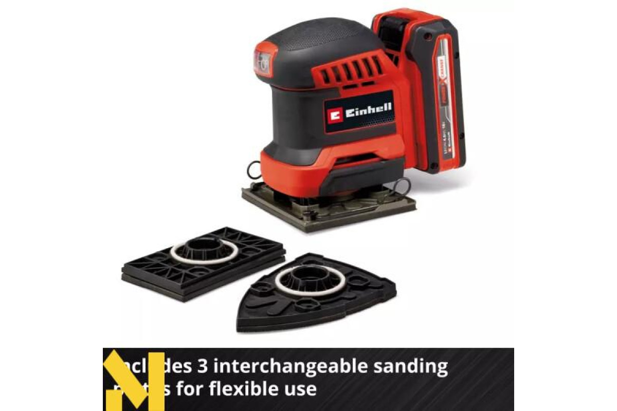 Акумуляторна шліфувальна машина Einhell TE-OS 18/113 3X Li-Solo — це компактний, потужний представник сімейства Power X-Change, яке можна комбінувати. Завдяки коливальному контуру 1,8 мм потужна акумуляторна шліфувальна машинка ідеально підходить для шліфування плоских поверхонь з дерева та деревних матеріалів і, наприклад, миттєво стирає фарбу чи лак.
