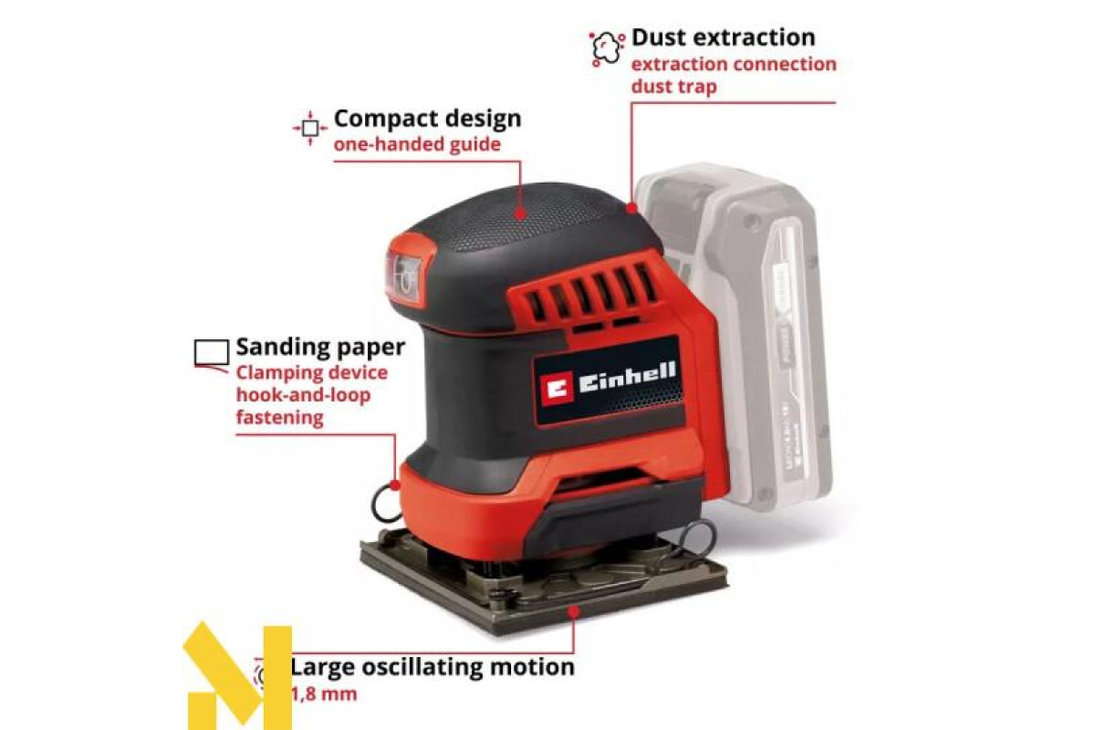 Акумуляторна ручна шліфувальна машина Einhell TE-OS 18/113 Li-Solo — це компактний, потужний представник сімейства Power X-Change, яке можна комбінувати. Завдяки коливальному контуру 1,8 мм потужна акумуляторна шліфувальна машинка ідеально підходить для шліфування плоских поверхонь з дерева та деревних матеріалів і, наприклад, миттєво стирає фарбу чи лак.