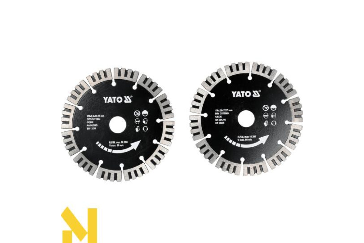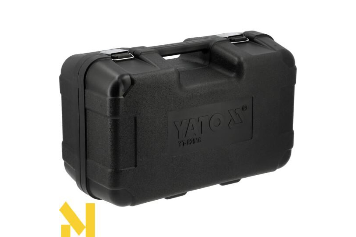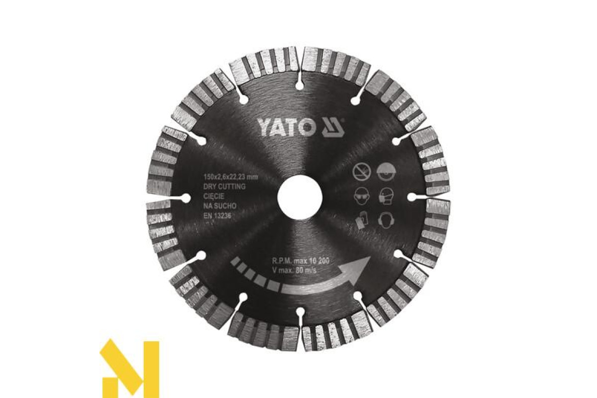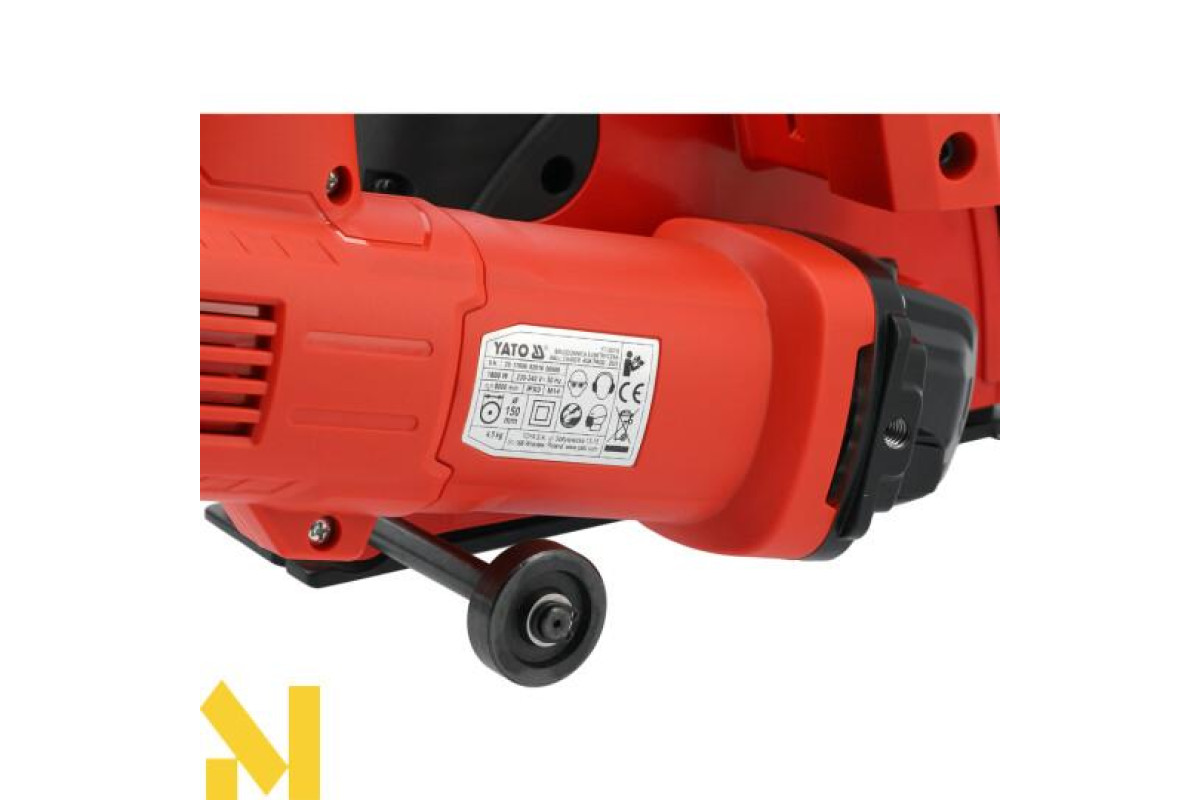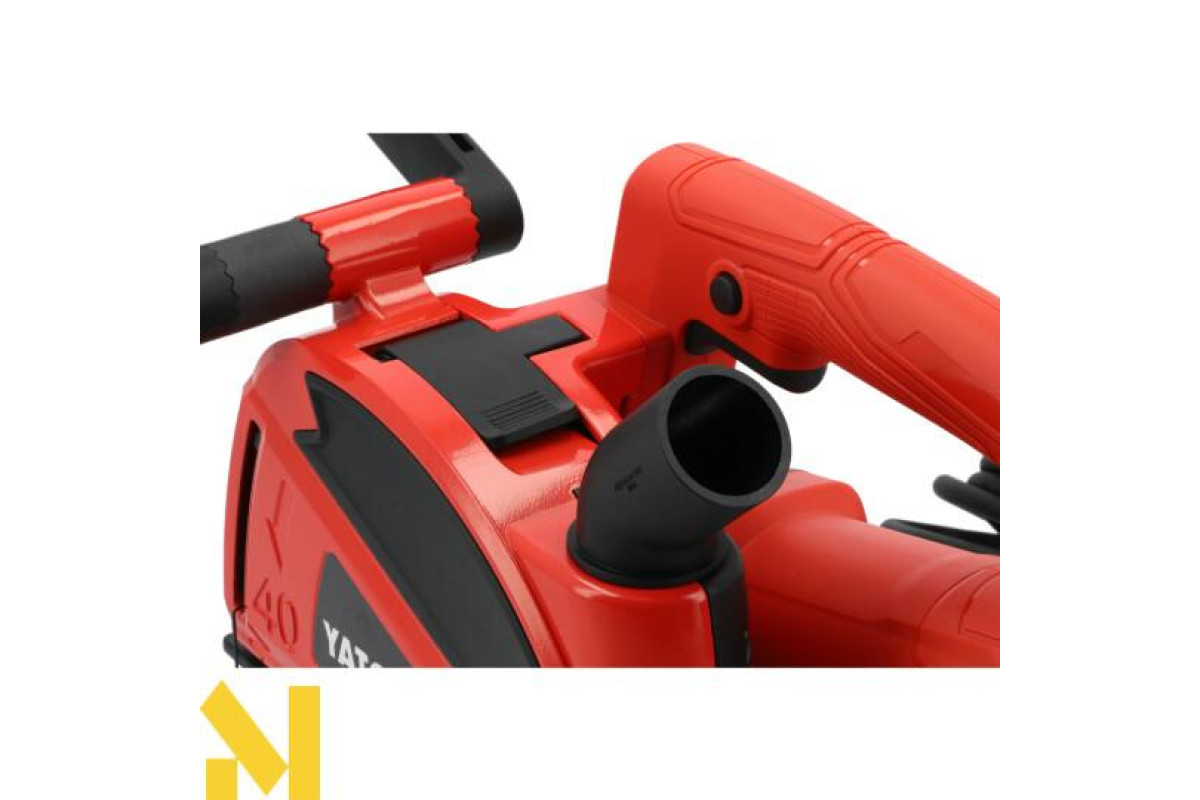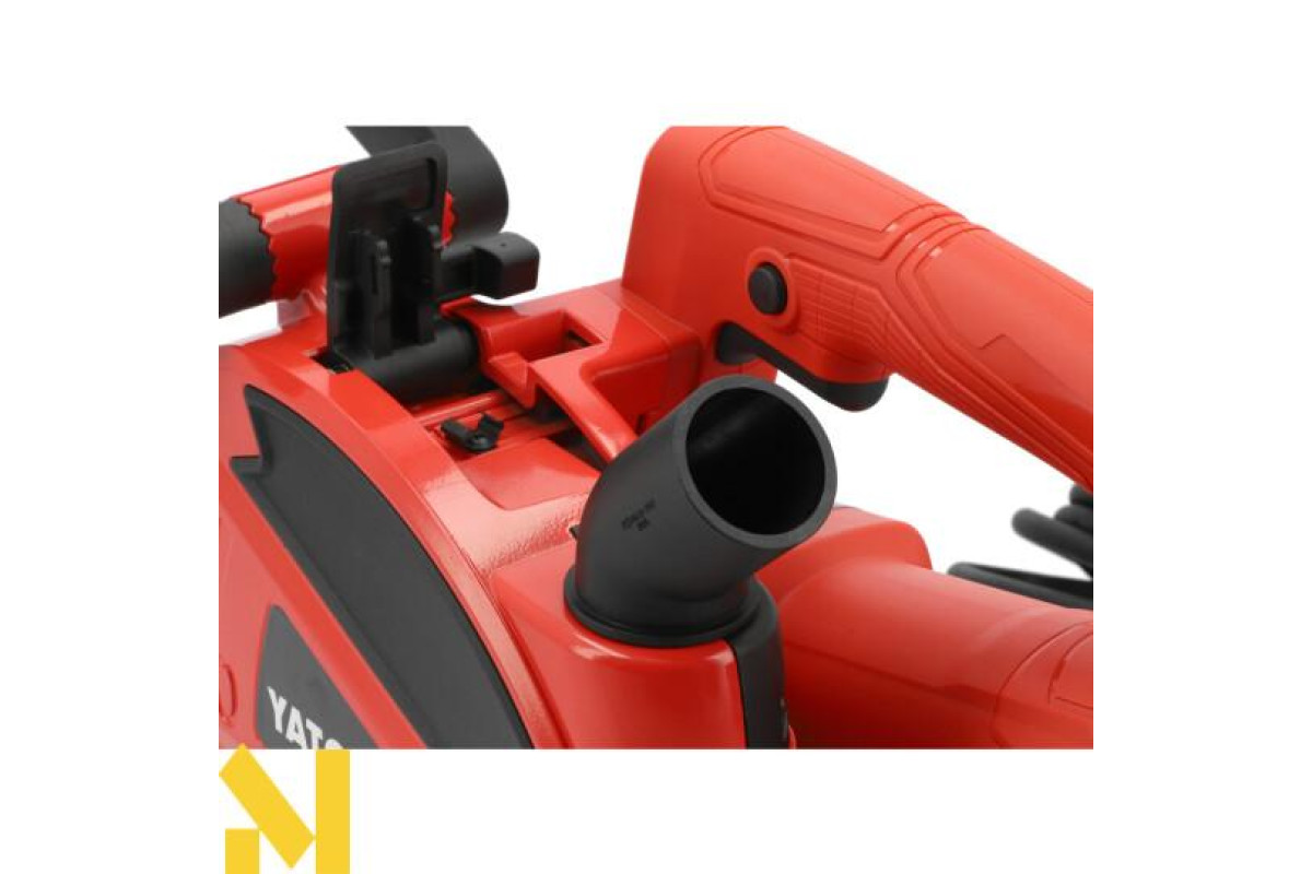 Майже повністю закритий захисний кожух з підключенням для пилососа (наприклад, YT-85717 або YT-85716) ефективно видаляє сміття під час різання, мінімізуючи утворення пилу. Двигун оснащений термовимикачем, а ротор і статор виготовлені з високоякісної міді. Підшипники захищені від потрапляння пилу, що підвищує довговічність та забезпечує надійність під час інтенсивного використання.