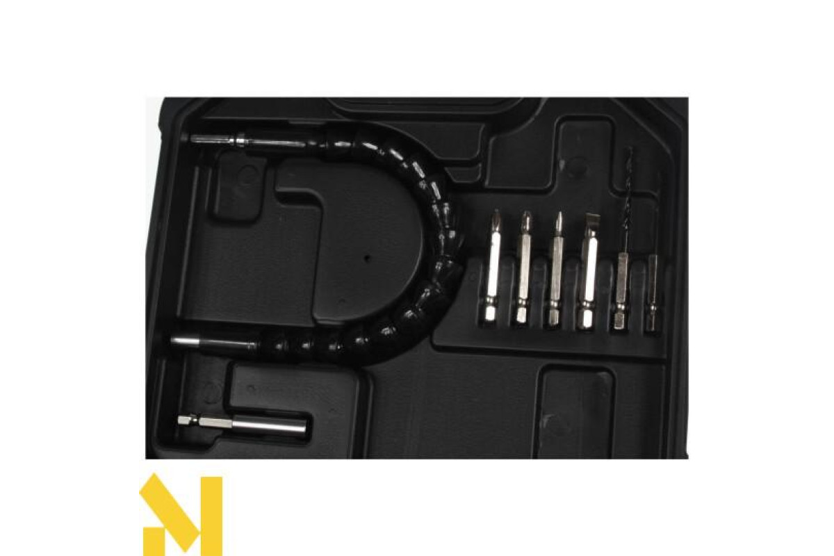 У комплекті до шуруповерта входять різноманітні насадки та біти, що дозволяє вам швидко і зручно виконувати різні завдання. Гнучкий подовжувач у комплекті допоможе отримати доступ до важкодоступних місць.