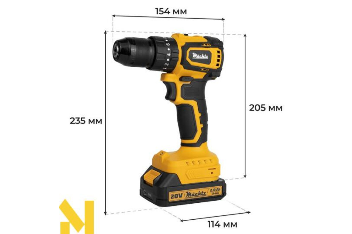 Акумуляторний безщітковий шуруповерт ударний Mächtz MCD-20H-LiB – Компактний та універсальний інструмент із міцним та надійним металевим патроном: