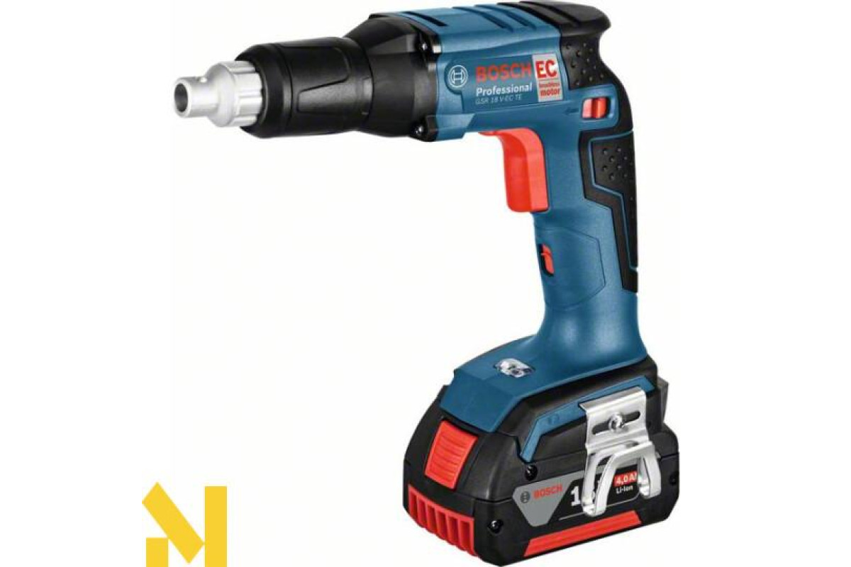 З акумуляторним шуруповертом для монтажу гіпсокартону Bosch GSR 18 V-EC TE Professional ви зможете працювати у безперервному режимі і закрутити до 3400 шурупів на одному заряді акумулятора ємністю 4,0 А/г