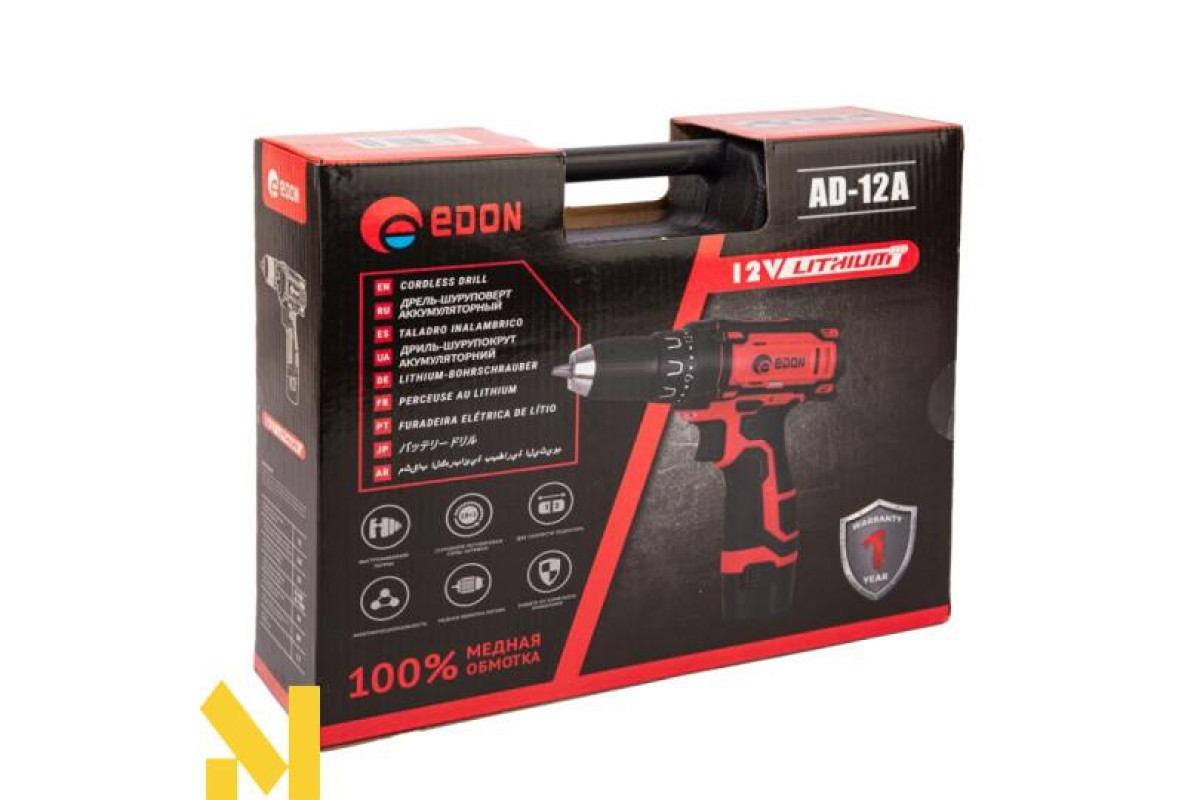 Акумуляторна шуруповерт Edon AD-12A - будівельний інструмент, характеристики якого дозволяють використовувати його як новачкам, так і досвідченим працівникам. Замінює цілий набір інструментів, включаючи викрутки. Призначено це обладнання для свердління, а також установки шурупів. Завдяки компактним габаритам, наявності безлічі зручних режимів, ця модель забезпечить швидке і якісне виконання робіт будь-якій людині, яка взяла її в руки.