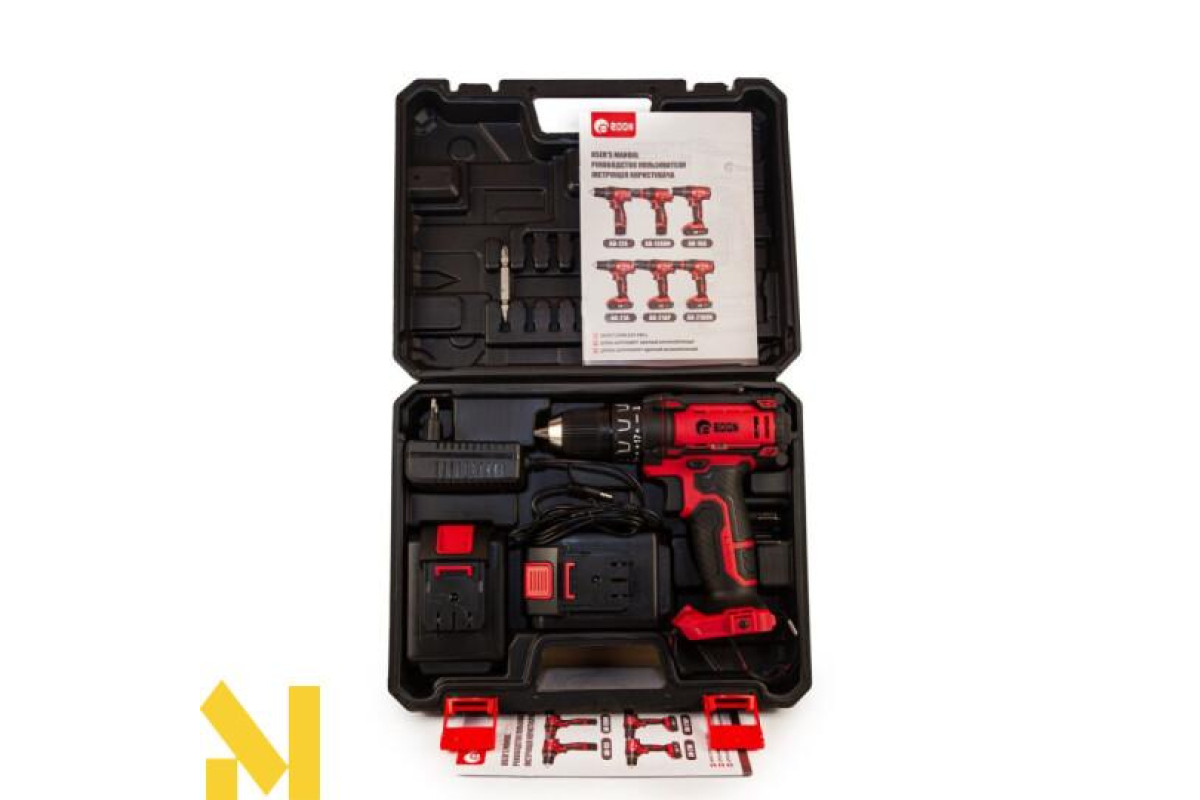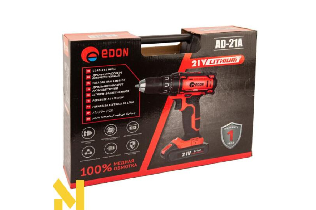 Оновлена серія інструменту "A". Дриль-шуруповерт акумуляторний ненаголошений Edon AD-21A, призначений для закручування, відвертання гвинтів і шурупів, свердління отворів у різних конструкційних матеріалах (у тому числі металі, дереві, пластмасі і т.д.).