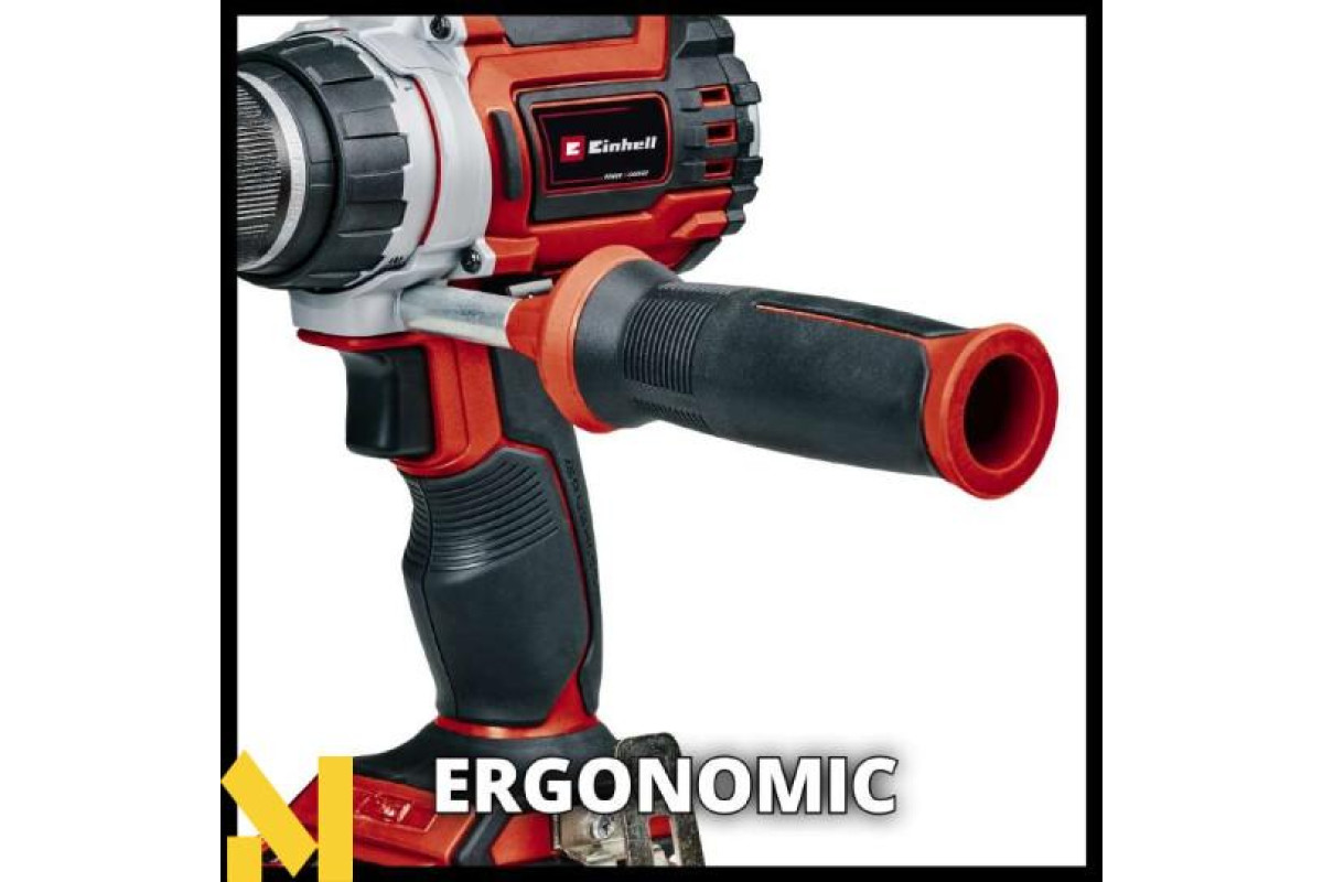 Дриль-шуруповерт лінійки Power X-Change system Einhell TP-CD 18/60 Li BL - Solo серії Professional призначений для робіт по дереву, металу, пластику, каменю і цегляних стінах: для свердління невеликих отворів і загвинчування / вигвинчування відповідних кріпильних елементів як вдома, так і в майстерні. TP-CD 18/60 Li BL - Solo має безщітковий двигун для кращої продуктивності і продовження часу в порівнянні зі звичайними двигунами з вугільними щітками. У безщіткового акумуляторного шуруповерта відсутній будь-який знос від механічного тертя. Акумулятори для всіх інструментів серії Power X-Change також можуть бути використані для роботи з Einhell TP-CD 18/60 Li BL - Solo. Наявність Led підсвічування робочої зони дозволяє працювати в мало освітлених місцях. Міцний, довговічний 2-х швидкісний металевий редуктор і потужний Безщітковий двигун з високим крутним моментом, забезпечують достатню потужність для загвинчування і високошвидкісного свердління. 21-позиційна муфта забезпечує високу точність загвинчування з максимальним затягуючим моментом 60 Нм + 1 установка для свердління. Електронний курок дрилі-шуруповерта Einhell TP-CD 18/60 Li BL - Solo дозволяє регулювати оберти двигуна в залежності від ступеня натискання. Завдяки ергономічному дизайну, прогумованій м'якій рукоятці і додатковій рукоятці, яка зменшує фізичне навантаження на користувача, інструмент зручно лежить в руці, дозволяючи працювати легко, не відчуваючи втоми. Інструмент поставляється без акумулятора і зарядного пристрою, але він може бути приведений в дію за допомогою Power X-Change акумулятора.