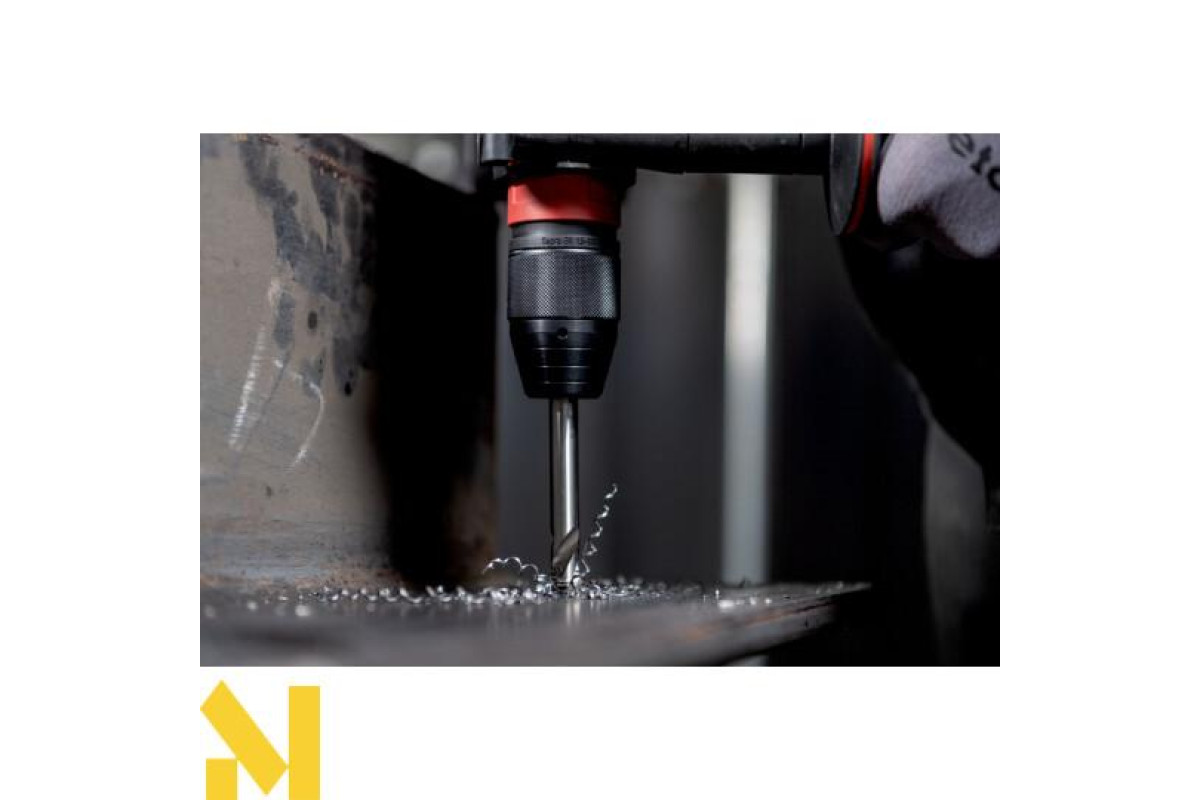 Надійний та потужний металевий патрон з функцією дотяжки, що запобігає прослизу оснастки в патроні.