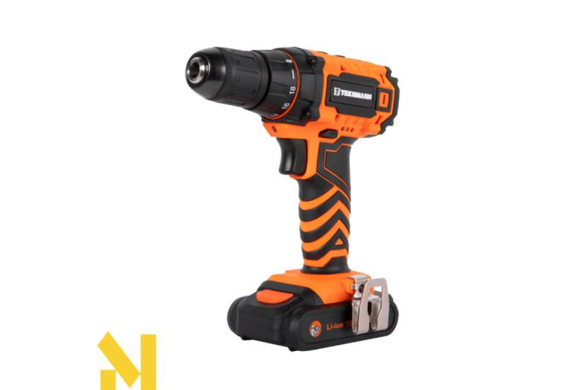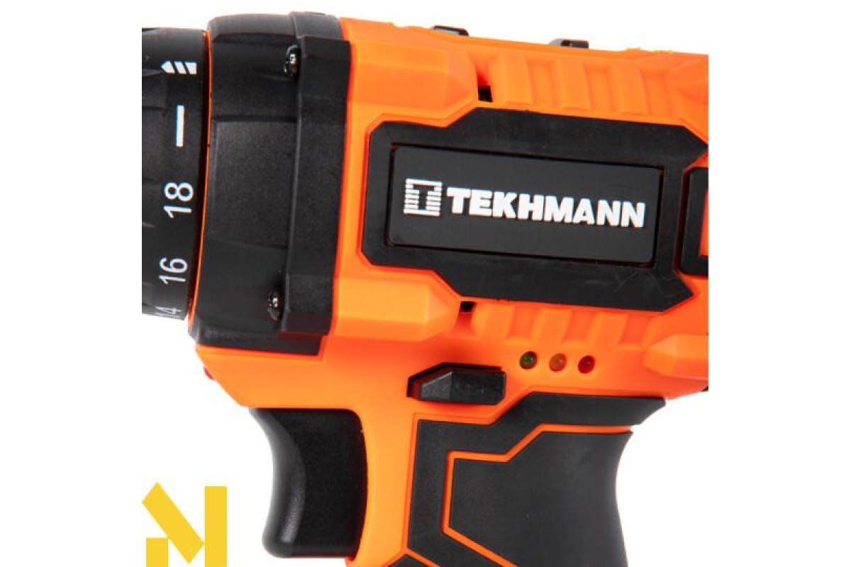 Шуруповерт Tekhmann TCD-18 LIW здатен працювати у двох швидкісних режимах – для операцій закручування/викручування (1-й режим) та свердління (2-й режим). Конструкцією муфти передбачена можливість вибору режиму обертання з ударом.