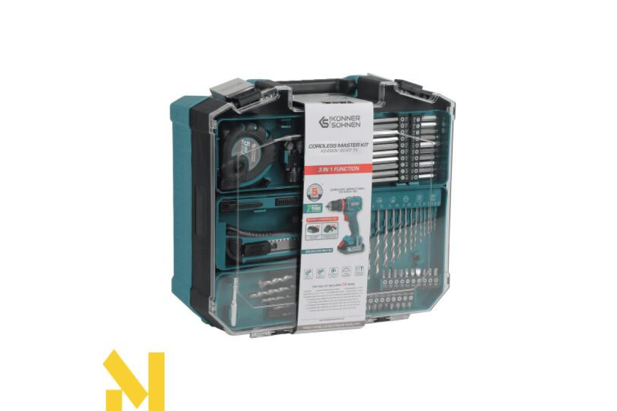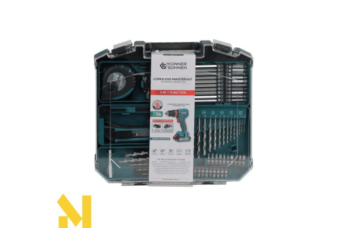Документація Шуруповерт акумуляторний ударний з комплектом аксесуарів Konner&Sohnen KS ID20V-60 KIT 74