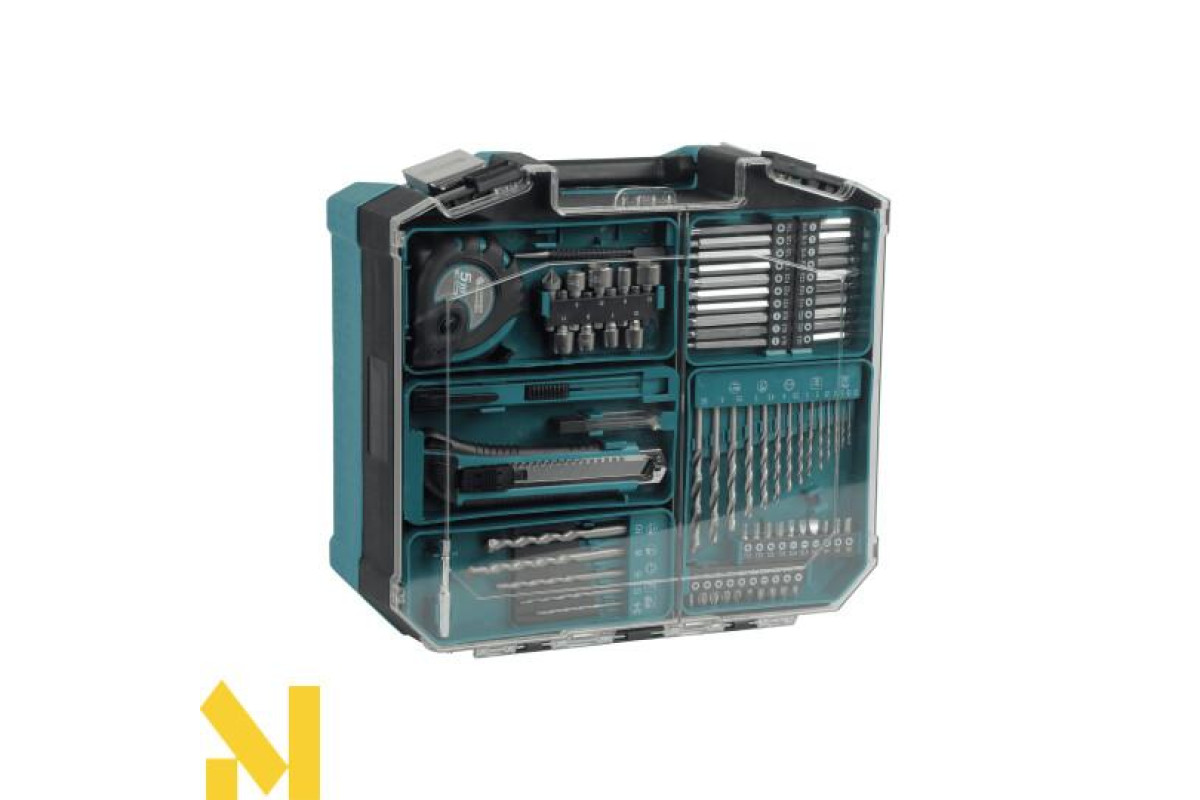 Повний набір у кейсі: усе необхідне для роботи входить до комплекту: ударний дриль, акумулятор 2 А·год, зарядний пристрій 2.4 А та набір із 74 аксесуарів — біти, свердла та насадки, усе зручно розміщено в кейсі, що спрощує зберігання, транспортування та робить дриль готовим до роботи одразу після розпакування.