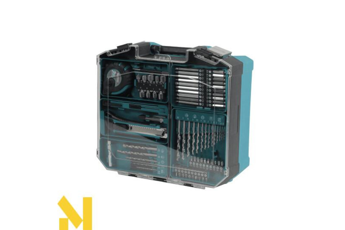 Повний набір у кейсі - усе необхідне для роботи входить до комплекту: дриль, акумулятор 2 А·год, зарядний пристрій 2.4 А та набір із 74 аксесуарів — біти, свердла та насадки, усе зручно розміщено в кейсі, що спрощує зберігання, транспортування та робить дриль готовим до роботи одразу після розпакування.