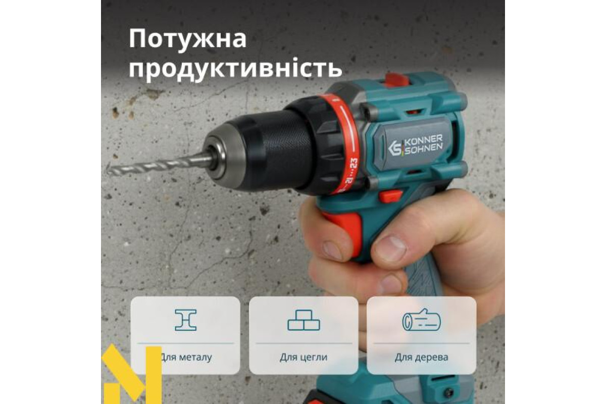 Потужність для твердих матеріалів - дриль забезпечує стабільну силу закручування до 60 Н·м — цього достатньо для роботи навіть із міцними поверхнями — металом чи товстими дерев’яними балками.