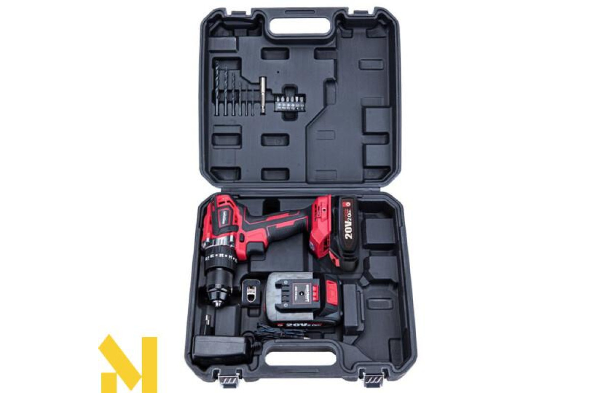 Шуруповерт WORCRAFT CHD-S20LiBAC поставляється в комплекті з двома вдосконаленими акумуляторами CLB-20V-2.0H, штекерним зарядним пристроєм і міцним пластиковим кейсом.