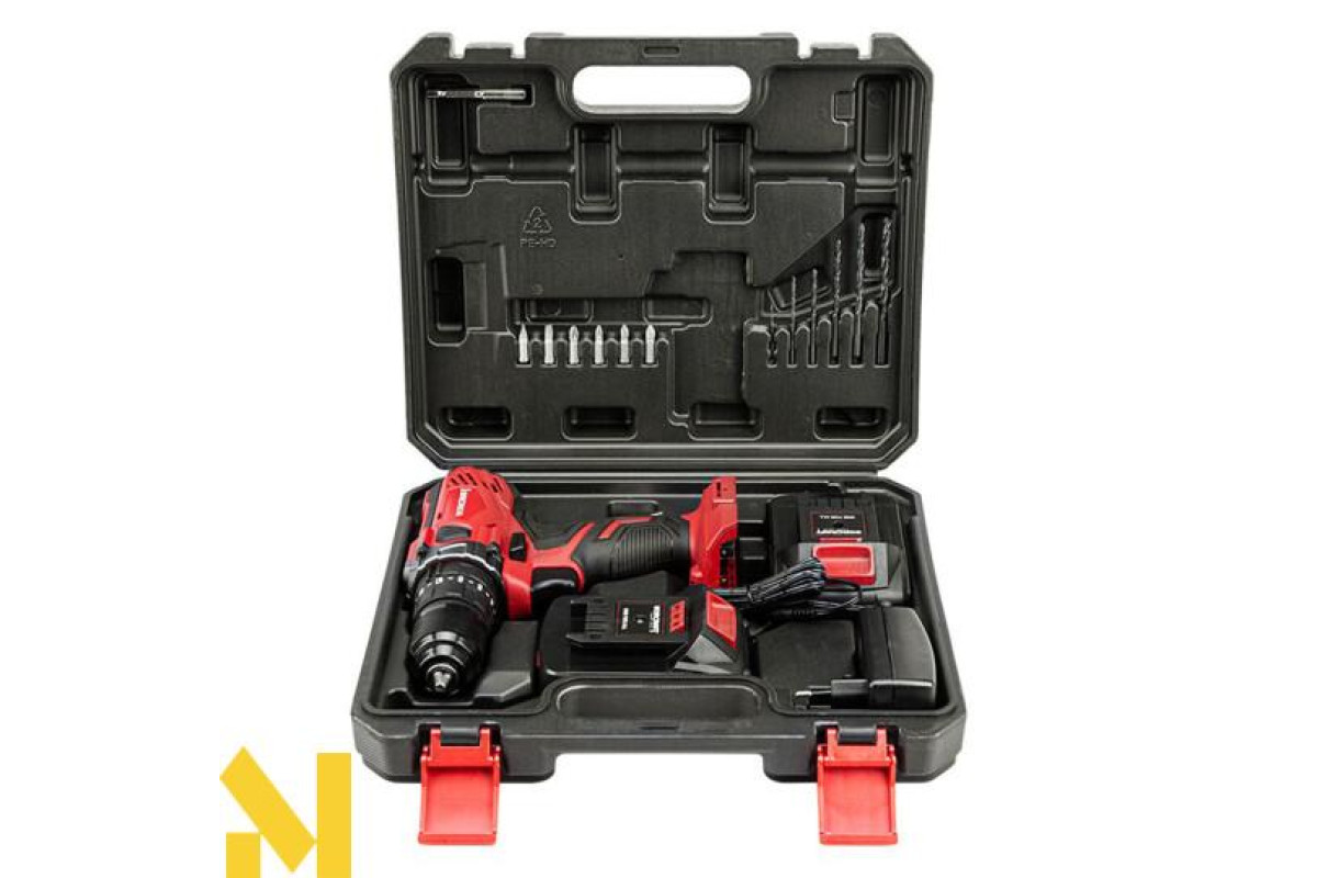 Широкий комплект поставки включає дві акумуляторні батареї, зарядний пристрій і набір оснастки. Все це компактно розташовано у зручному кейсі.