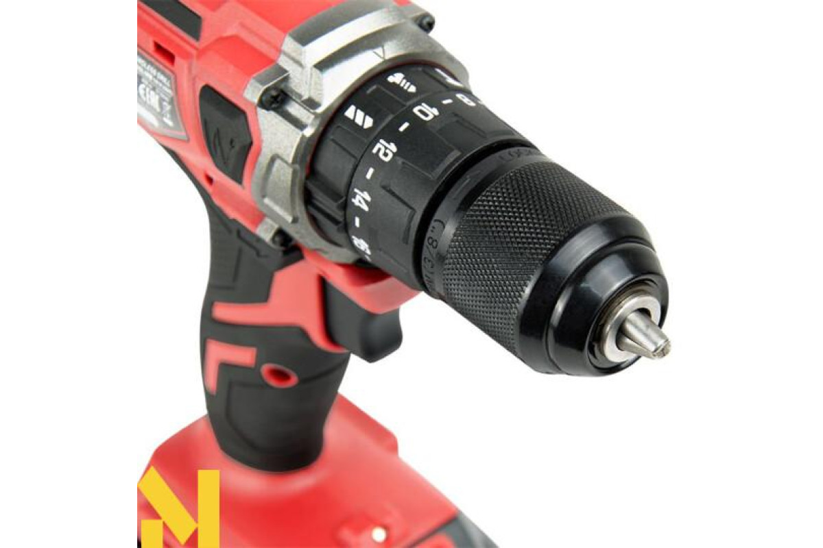 Функція удару підвищує продуктивність роботи, надійний металевий патрон забезпечує швидку та надійну фіксацію оснастки, а муфта регулювання крутного моменту дозволяє більш акуратно працювати з крихкими матеріалами.