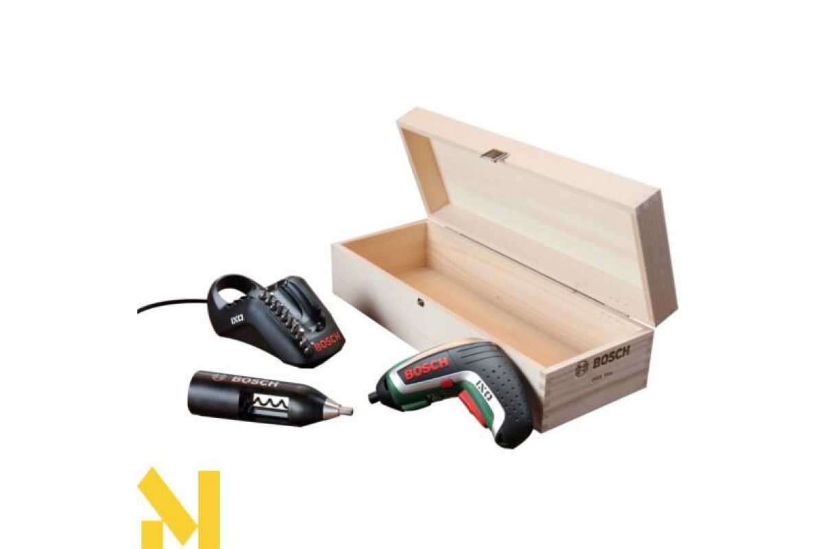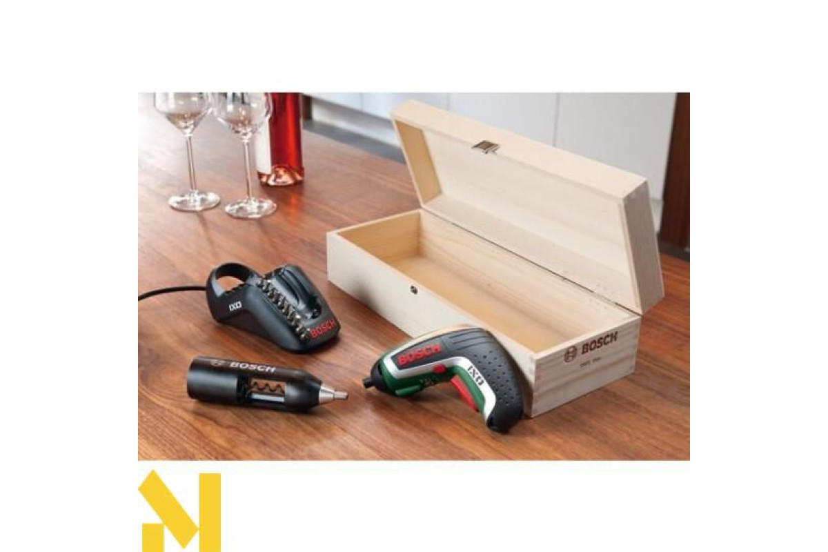Насадка-штопорIXO Vino - це ексклюзивний комплект від компанії Bosch. У цей комплект входить безпосередньо сам шуруповерт, який можна використовувати за прямим призначенням, встановивши одну з 10 біт з комплекту, зарядна док-станція і родзинка набору - фірмовий штопор з емблемою компанії Bosch. Ясна річ, функціонал інструменту в такій комплектації набагато ширше.