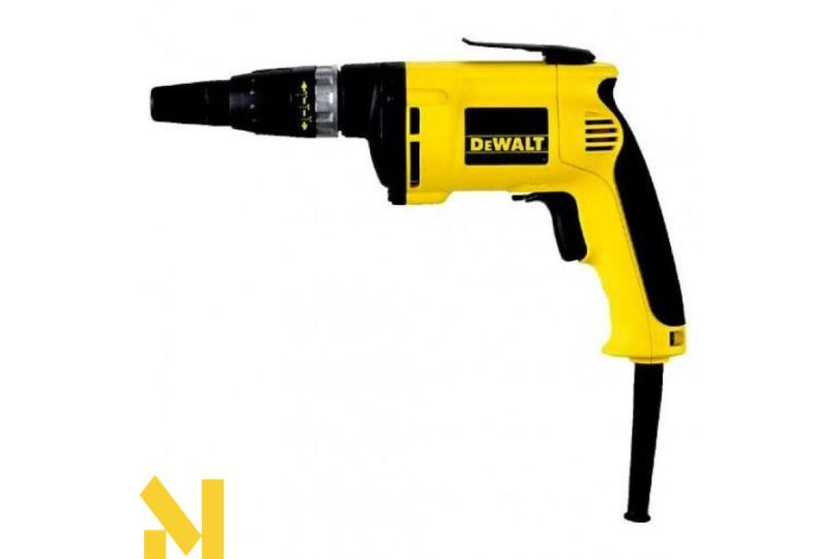 Шуруповерт DeWALT DW275K легкий і дуже практичний інструмент для оздоблювальних робіт, а саме для кріплення листів сухої штукатурки на дерев'яну обшивку або металеві каркаси. Інструмент оснащений продуктивним двигуном, що забезпечує на холостому ходу обертання робочих насадок зі швидкістю до 5300 об / хв, що сприяє швидкому вгвинчування великої кількості шурупів. А максимальний крутний момент зумовлює їх розмір (до 4.8 мм). Насадки встановлюються в шестигранний тримач, і їх заміна не є складною. Для регулювання глибини вгвинчування шуруповерт DeWALT DW275K забезпечений індикатором глибини, а саме регулювання здійснюється за допомогою спеціального регулювального кільця. Поворот кільця за годинниковою стрілкою збільшує глибину вгвинчування, а проти годинникової стрілки зменшує. Оптимальне значення для конкретного кріплення і матеріалу основи визначається в результаті пробного вгвинчування. Шуруповерт DeWALT DW275K оснащений автоматичною муфтою зчеплення, яка забезпечує обертання насадок тільки при натисканні інструментом на капелюшок кріплення. Таким чином, можлива установка кріпильного елемента в робоче пристосування при працюючому двигуні, що особливо затребуване при серійному угвинчуванні великої кількості шурупів на задану глибину. До того ж в шуруповерті DeWALT DW275K є механізм блокування пускової клавіші у включеному положенні на максимальних обертах. Маніпуляції з пусковим вимикачем при великомасштабних однотипних шуруповертних роботах завдяки цьому зводяться до мінімуму: включення з блокуванням перед початком робіт і виключення по їх завершенню. З шуруповертом DeWALT DW275K доступно як пряме, так і зворотне обертання насадок, що забезпечується наявністю реверсивної функції із зручно розташованим перемикачем. Інструмент комфортно лягає в долоню. Прогумована вставка і два упори на рукоятці унеможливлюють його зісковзування.