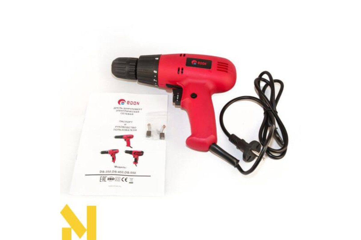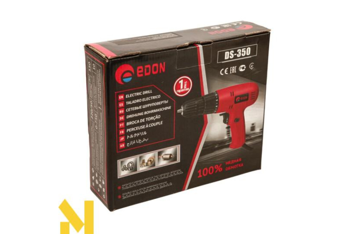 Дриль-шуруповерт електрична Edon DS-350 - електричний інструмент, призначений для додачі обертального руху свердла або іншому ріжучого інструменту для свердління отворів в різних матеріалах при проведенні будівельних, оздоблювальних, столярних, слюсарних та інших робіт.