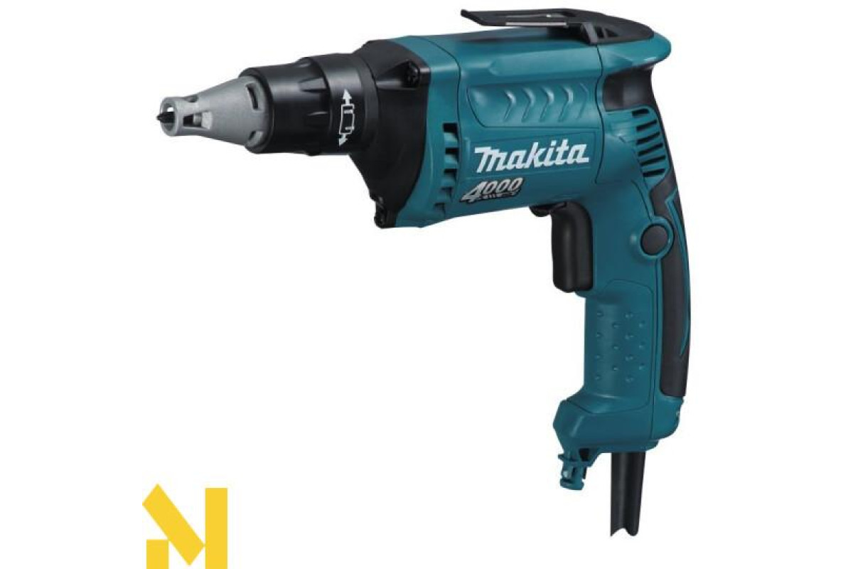 Шуруповерт мережевий Makita FS4000 використовують для інтенсивної роботи. У разі наявності спеціальних насадок його можна застосовувати і при свердлінні отворів, але основна його функція – закручування кріплень. Завдяки тримачем біт з шестигранним хвостовиком і системою регулювання глибини, працювати ним досить зручно.