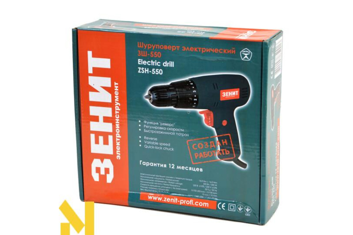 Упаковка картонна.Шуруповерт сетевой ЗШ-550 є надійною і зручною в роботі моделлю, завдяки ергономічному дизайну, порівняно невеликим розмірам і застосування якісних деталей і вузлів. Шуруповерт ЗШ-550 має систему регулювання швидкості обертання шпинделя, вбудовану в кнопку включення, ключовий патрон, перемикач реверсу, торсионную муфту з можливістю установки необхідного крутного моменту. Модель характеризується зручністю у використанні завдяки ергономічному дизайну та малогабаритним розмірам шуруповерта.