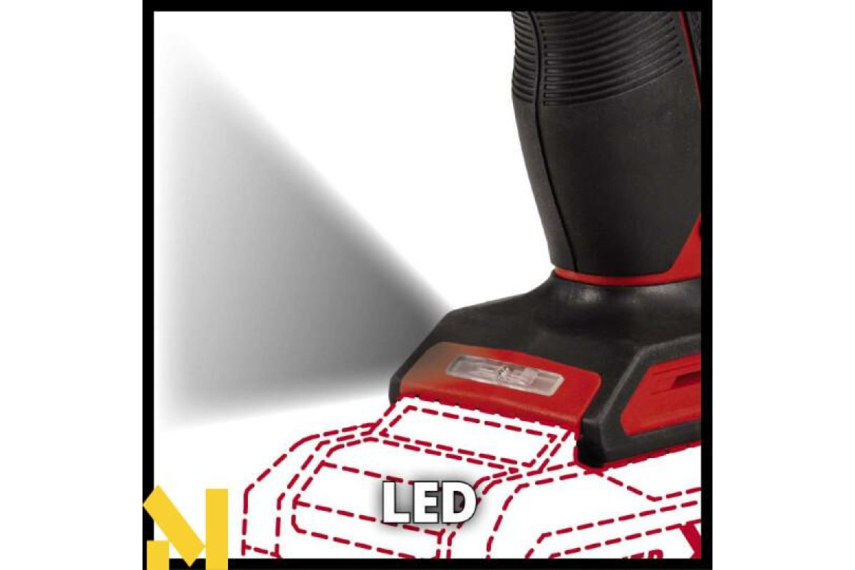 Дриль-шуруповерт лінійки Power X-Change system Einhell TE-CD 18/40 Li BL Solo серії Expert plus призначений для робіт по дереву, металу, пластику: для свердління невеликих отворів і загвинчування / вигвинчування відповідних кріпильних елементів як вдома, так і в майстерні або гаражі. Einhell TE-CD 18/40 Li BL Solo має Безщітковий двигун для кращої продуктивності і продовження часу в порівнянні зі звичайними двигунами з вугільними щітками. У безщітковому акумуляторному шуруповерті відсутній будь-який знос від механічного тертя. Наявність Led підсвічування робочої зони дозволяє працювати в мало освітлених місцях. Міцний, довговічний 2-х швидкісний металевий редуктор і потужний Безщітковий двигун з високим крутним моментом забезпечують достатню потужність для загвинчування і високошвидкісного свердління. 20-позиційна муфта забезпечує високу точність загвинчування з максимальним затягуючим моментом 40 Нм + 1 установка для свердління. Електронний курок дрилі-шуруповерта Einhell TE-CD 18/40 Li BL Solo дозволяє регулювати оберти двигуна в залежності від ступеня натискання. Завдяки ергономічному дизайну, невеликій вазі і компактному розміру, прогумованій м'якій рукоятці інструмент зручно лежить в руці, дозволяючи працювати легко, не відчуваючи втоми. Інструмент поставляється без акумулятора і зарядного пристрою, але він може бути приведений в дію за допомогою Power X-Change акумулятора.