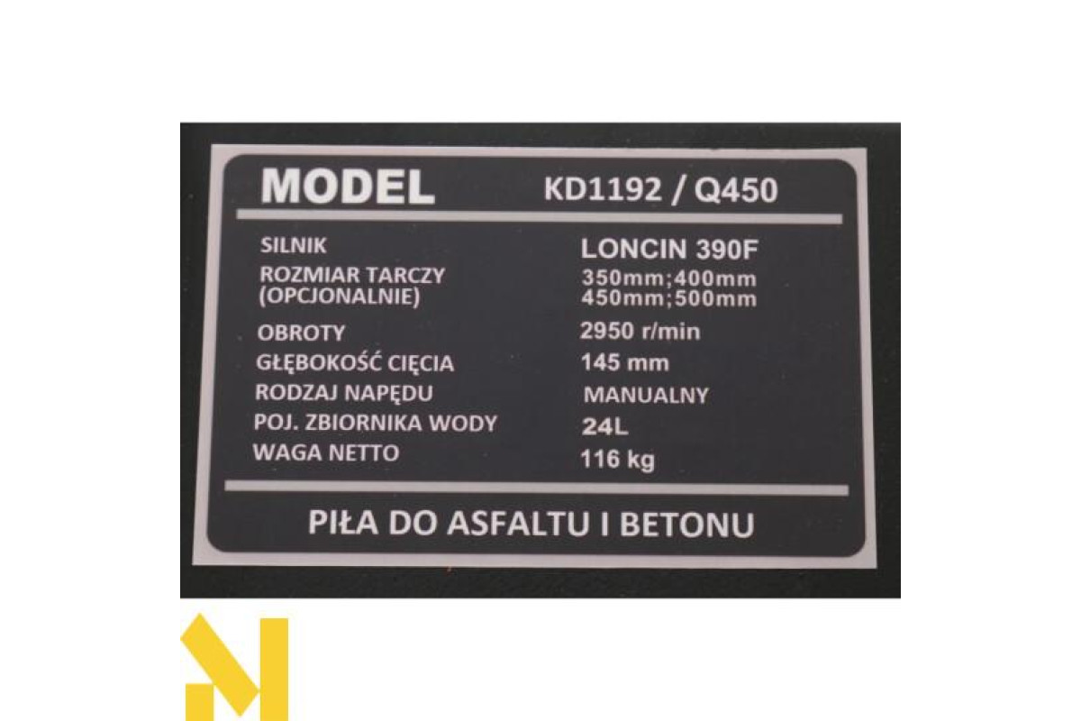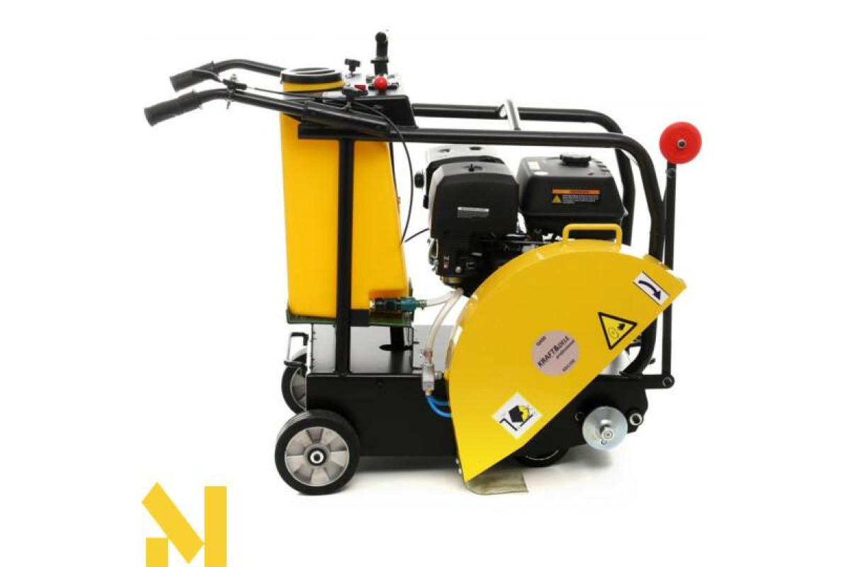 Пила для різання асфальту та бетону від Kraft&Dele. Машина призначена для різання асфальту та бетону по прямій лінії. Представлена модель оснащена професійним двигуном LONCIN 390F. Цей бренд відомий високою якістю та довговічністю своєї продукції. Привід передається за допомогою клинових ременів, стійких до перевантажень, що виникають під час роботи машини. Конструкція пилки дозволяє встановлювати диск діаметром від 350 мм до 500 мм. Пила має захисний кожух для запобігання контакту з диском під час роботи та систему охолодження диска. Охолодження диска здійснюється водою, бак вміщує 24 л води. Додатковим бонусом є направляюча, яка дозволяє точно встановити лінію розпилу та контролювати її під час роботи.