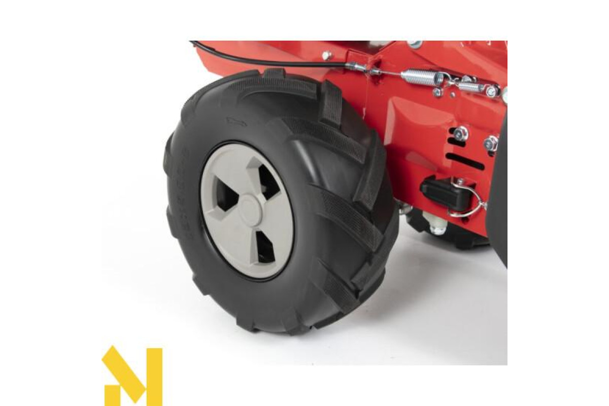 Машина оснащена двигуном марки Loncin об'ємом 196 см3, що забезпечує надійну та комфортну роботу. Робоча ширина агрегату дозволяє косити зелену зону шириною 88 см.
