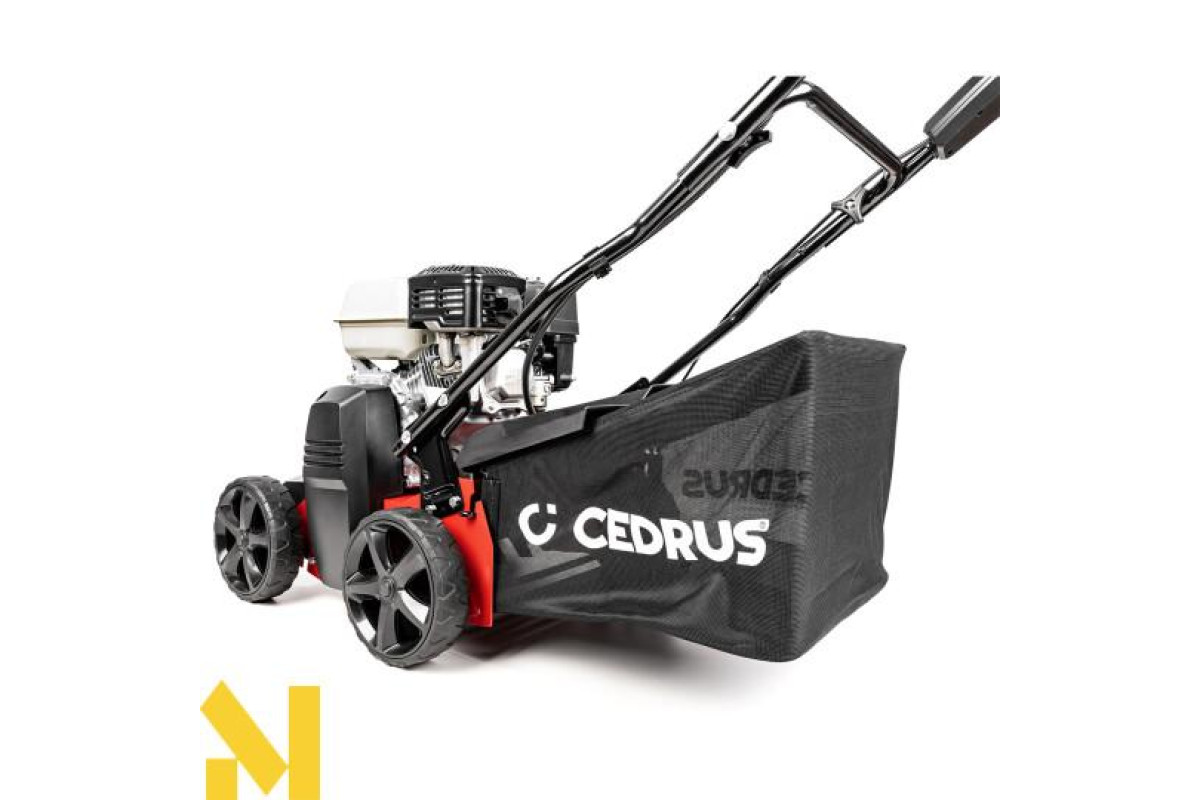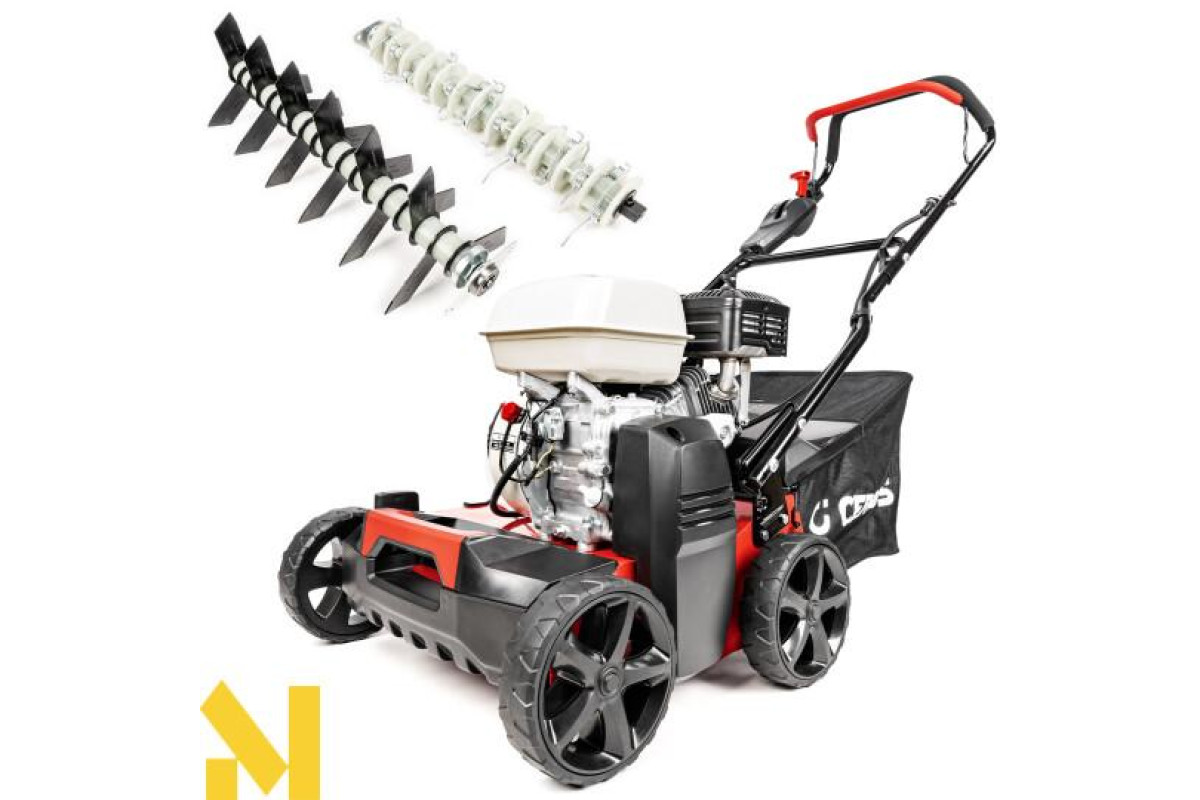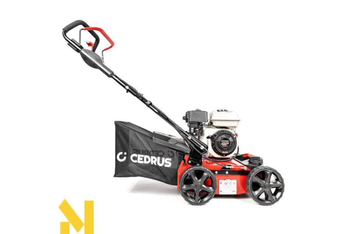 Бензиновий скарифікатор Cedrus WR01 оснащений центральним регулюванням робочої глибини від 5 до 15 мм. Він має кошик на 45 л, колеса на підшипниках і дуже потужний двигун 4,8 кВт зі швидкістю обертання 3600 об/хв.