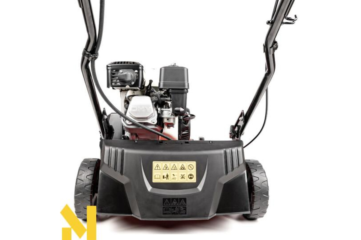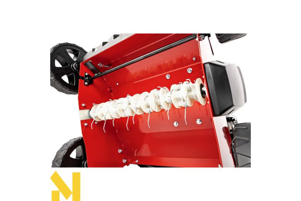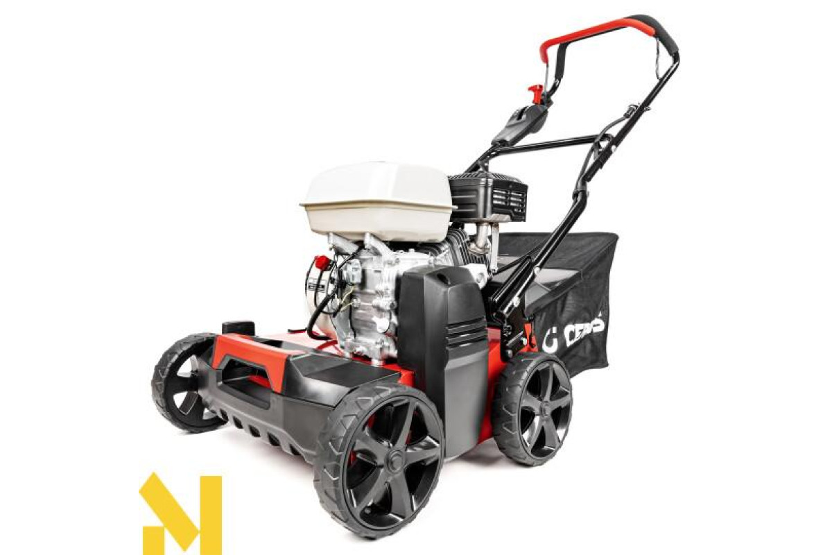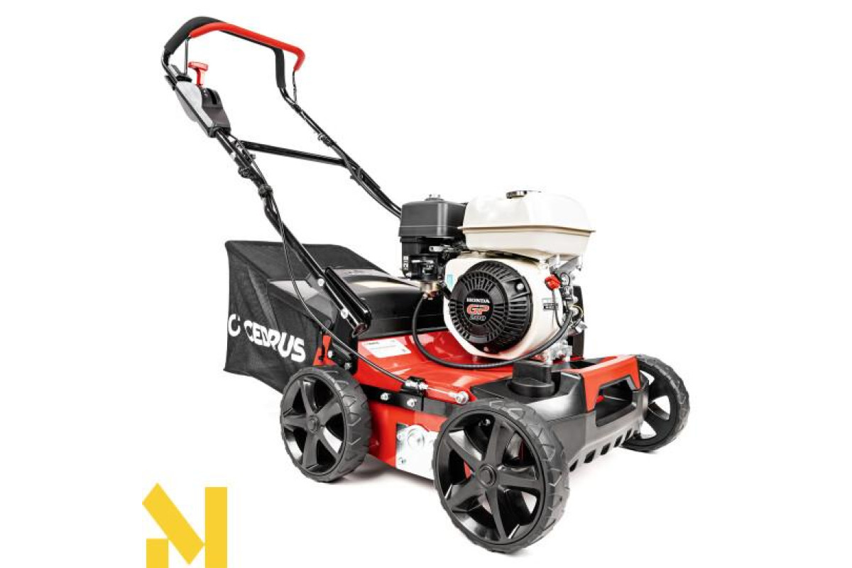Бензиновий скарифікатор Cedrus WR01 оснащений центральним регулюванням робочої глибини від 5 до 15 мм. Він має кошик на 45 л, колеса на підшипниках і дуже потужний двигун 4,8 кВт зі швидкістю обертання 3600 об/хв.