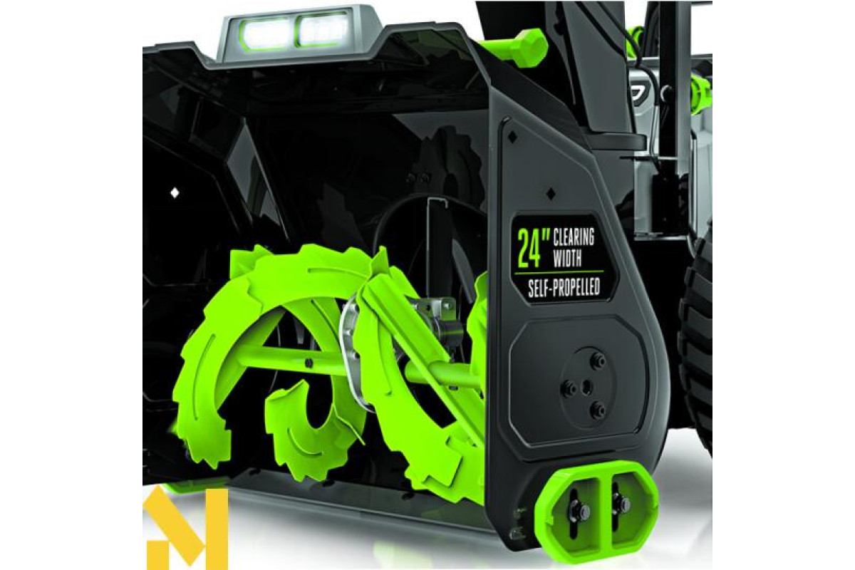 Єдиний двоступеневий снігоприбирач EGO SNT2400E який працює з аналогічно продуктивністю, що і бензинові аналоги але без шуму, викидів і вібрації. Технологія Peak Power в поєднанні з акумулятором EGO 56В ARC дуже легко впораються з будь-яким снігом. Виконуйте роботу швидше завдяки ширині захоплення 60 см і висоті 50 см. Чотири LED ліхтарі дозволяють працювати навіть увечері. Змінна швидкість шнека, поворот жолоба на 200 градусів і максимальна дальність викиду 15м дозволяє вам повний контроль над напрямком викиду снігу.