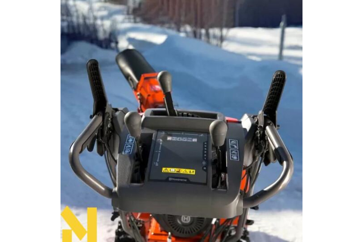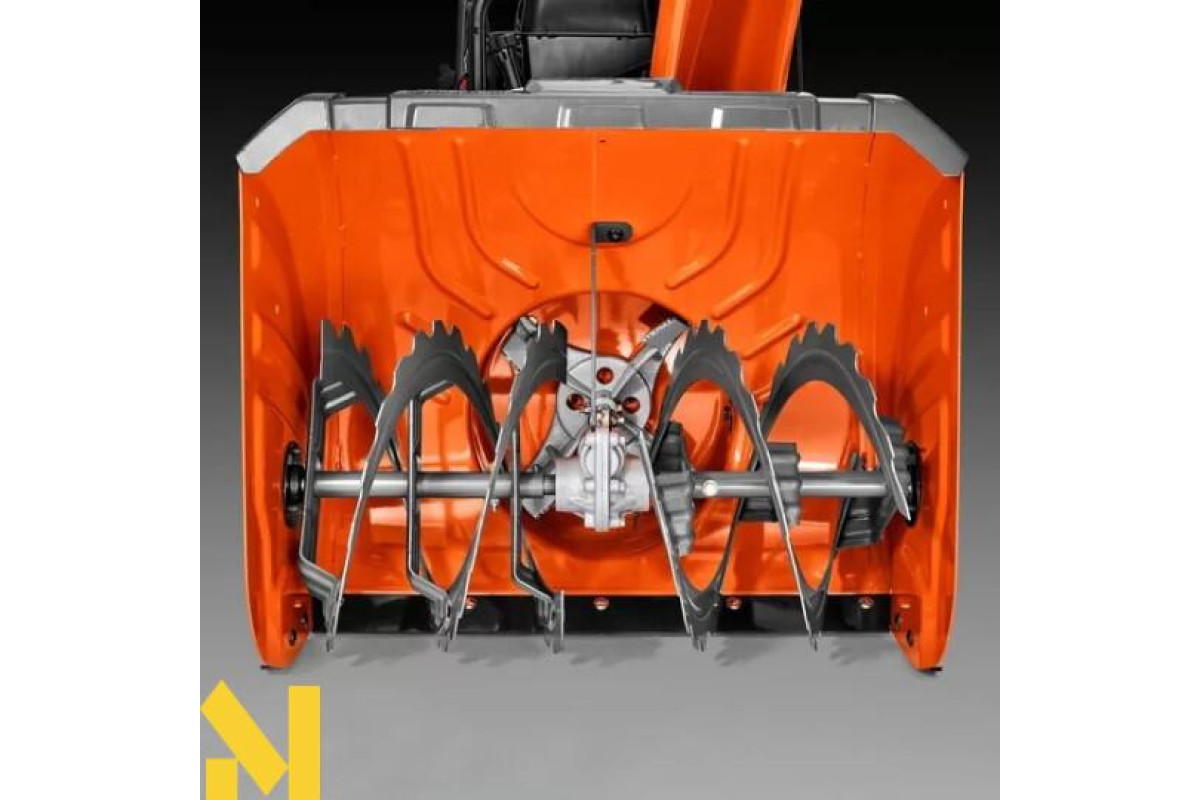 Снігоприбиральник Husqvarna ST324 професійна техніка для чистки території від снігових заметів і великі сугробів. Масивний шнек гострими зубцями розколює крижану кірку і дробить щільне покриття, а Чотирьохлопатева крильчатка оперативно виштовхує перероблений матеріал через розтруб. 4-тактний фірмовий двигун від Husqvarna розроблений для функціонування при низьких температурах, має значну потужність для впевненого вирішення складних завдань. Ремінний привід з несуттєвими втратами передає крутний момент на снігоприбиральне оснащення, підвищуючи продуктивність. Самохідний тип пересування. Маневрений агрегат приводиться в рух енергією бензомотора, переданою на колісну пару, за рахунок чого основна функція оператора коригування напрямку і управління параметрами роботи. 6 передач вперед і 1 назад. Передбачена можливість плавної зміни швидкості варіаторного снігоочисника при їзді вперед для вибору оптимального темпу снігоприбиральних операцій в залежності від щільності снігового покриву. Скидання загрібаючої сніжної маси здійснюється через дефлектор, відстань відведення можна регулювати для формування куп в певних місцях, де вони не будуть заважати дальністю викиду до 15 метрів. Обертанням козирка на відвідній трубі можна налаштувати спрямованість потоку, для цього досить повернути рукоятку на управляючій панелі. Ручки з підігрівом не дадуть рукам замерзнути в найхолодніші вечора, забезпечать неутомливу роботу на свіжому повітрі без ризику застудитися. Яскравий прожектор добре висвітлює робочий простір, допомагає виявити перешкоди навіть в туман і пелену дрібних сніжинок.