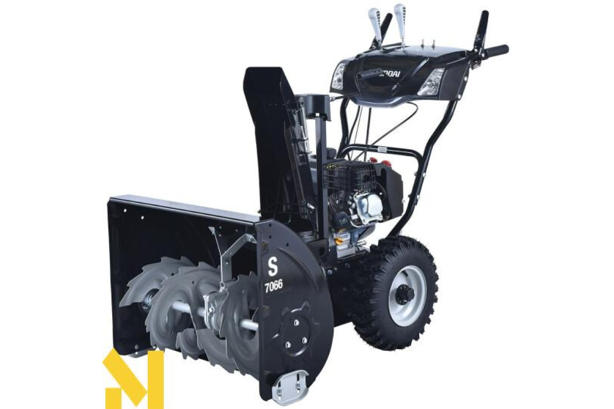 Бензиновий снігоприбирач Hyundai S 7066 професійна техніка для розчищення снігових заметів на середній і великий території. Модифікація відмінно справляється з півметровим шаром свіжого і спресованого снігу, ліквідує замети. Завдяки потужному шнеку крижана кірка і щільний сніговий покрив ефективно подрібнюються. А однією з головних фішок моделі є функція блокування диференціала.