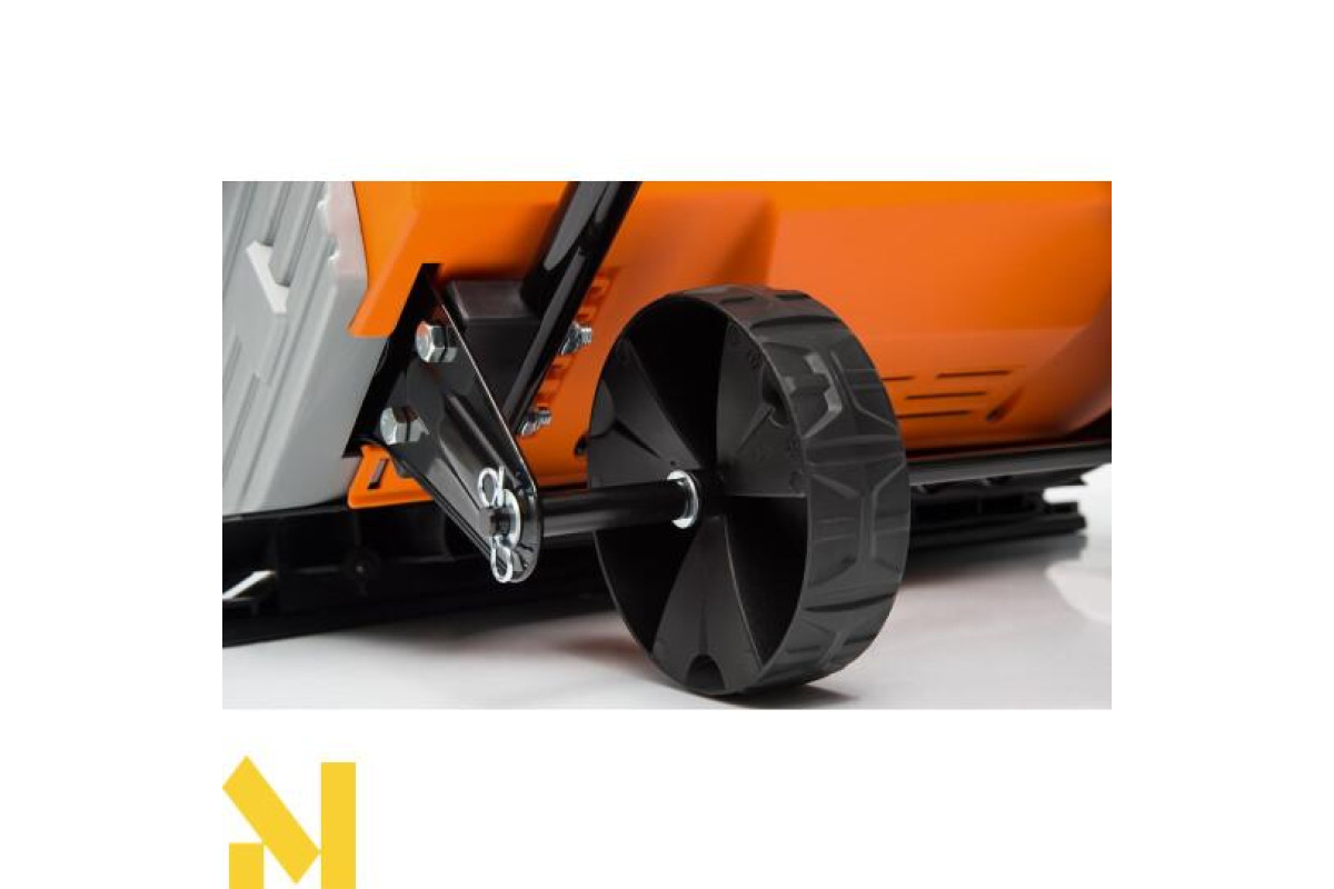 Металеві обгумовані шнеки забезпечують дбайливе прибирання снігу до самої поверхні землі (асфальту, плитки, бруківки і т. П.). Додаткові колеса покращують маневреність і прохідність машини.