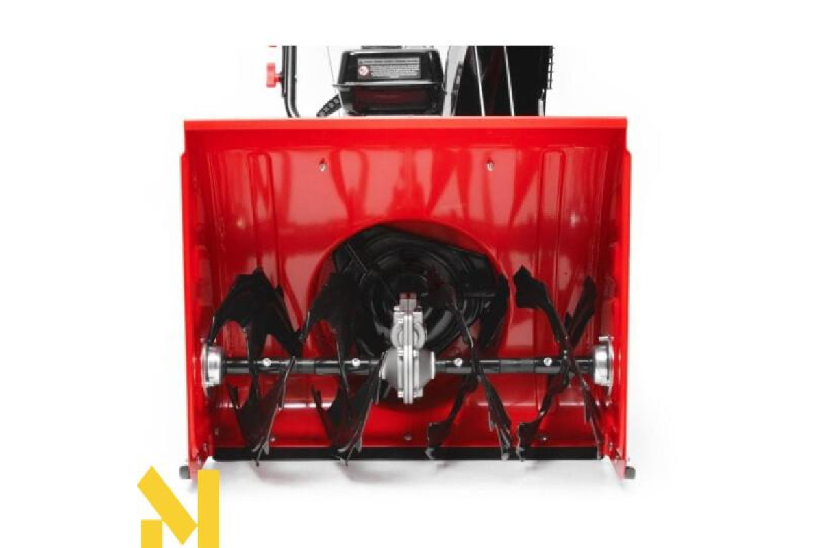 Наш інструмент являє собою 2-хступінчастий очисник, з яким Ви зможете прибрати дуже велику територію від снігу не докладаючи значних зусиль. Агрегат рухається сам - Вам потрібно тільки повертати. Для додаткової продуктивності розробники дали Вам можливість налаштовувати швидкість пересування машини, що дозволяє підлаштуватися під висоту снігового покриву. Наприклад - щоб прибрати щільний сніг, Вам краще включити знижену передачу. Також інструмент оснащений заднім ходом, що покращує маневреність. Діаметр шин - 13 дюймів. А протектори допоможуть в більш простому проходженні території. Жолоб вивантажується і повертається на 190 градусів, що дозволяє розкидати сніг в потрібному напрямку. До речі - снігоочисник розкидає сніг максимум на 13 метрів. Машина оснащена панеллю управління, а також рукояткою, яка керує напрямком і відстанню, на яку викидається сніг. Рукоятка розташовується на панелі управління, що збільшує додатковий комфорт.