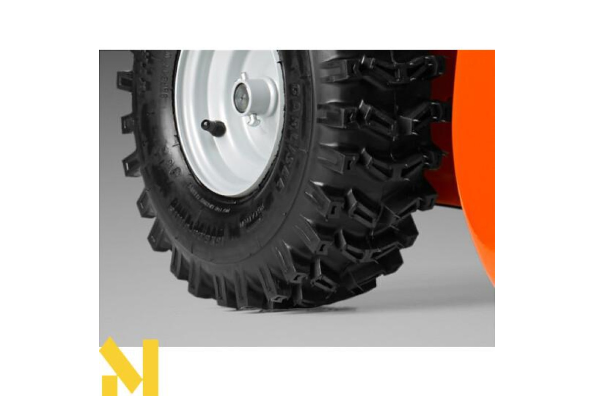 Потужні колеса снігоприбирача Husqvarna ST 230P здатні підтримати стійке положення навіть на крутому спуску. Широкі протектори можуть легко пересуватися по сніжній цілині, що не грузнучи в ній. Сніг, який забивається в глибокий малюнок коліс, під час руху викидається сам.