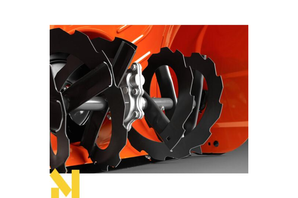 Для того, щоб власник міг прибирати не тільки щойно випав сніжок, але і злежалі замети мокрого снігу, шнек виготовлений із сталевого сплаву. Металеві зубці здатні захоплювати шматки льоду і кришити його. Машина швидко впорається з великими кучугурами з талого снігу, розчистить великі майданчики за короткий проміжок часу.