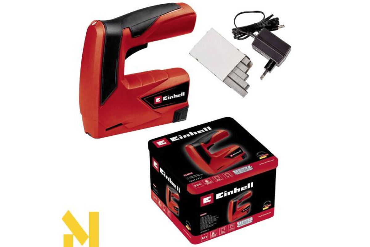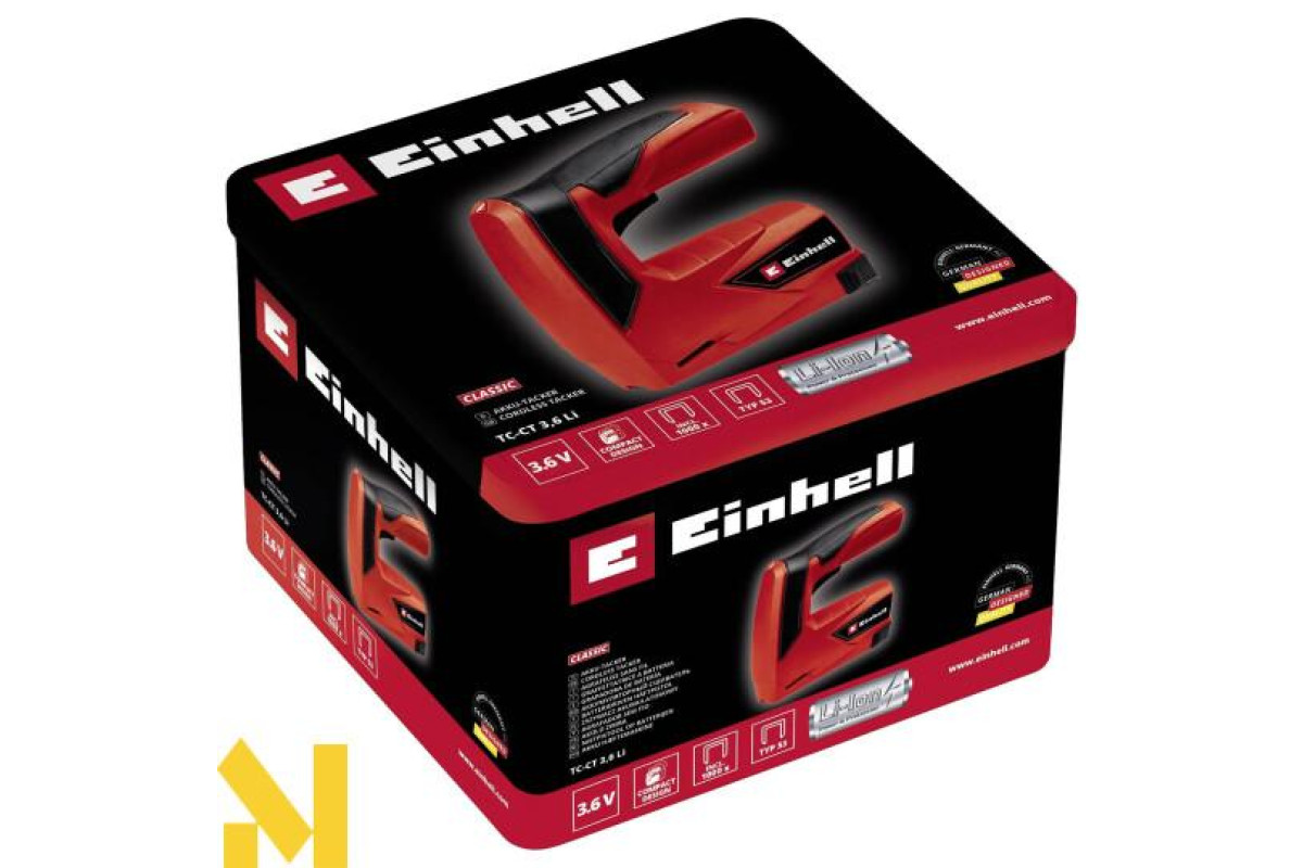 Einhell TC-CT 3.6 Li працює від акумуляторної енергії, що дає інструменту величезну перевагу. Ви тепер не прив'язані до розетки. Проводи не будуть тягнутися через все приміщення, ніхто не буде спотикатися об них та інше. З даним інструментом Ви зможете швидко і легко закріпити різні заготовки до дерева, пластику, гіпсокартону. Степлер має швидкість в 30 пострілів за хвилину. Такої швидкості цілком достатньо для комфортної та продуктивної роботи. Інструмент має невеликі розміри і приємний дизайн. Рукоятка виконана з застосуванням гумових вставок, що повністю виключить ковзання інструменту в руці. Завантаження скоб відбувається дуже легко і швидко