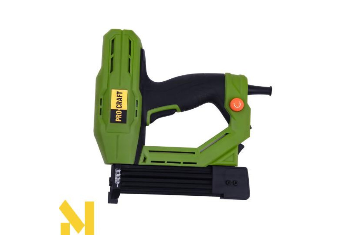 Степлер Procraft PEH600 - компактний пристрій для автоматичного забивання цвяхів і металевих скоб з частотою 20 ударів на хвилину. Степлер можна використовувати в пакувальних роботах, меблевому виробництві, ремонті, а також в побуті для швидкої фіксації окремих елементів з дерева, фанери, ДСП.