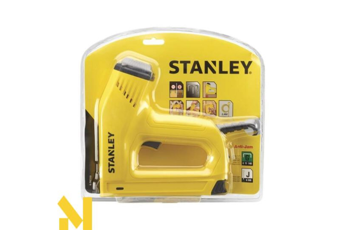 Степлер електричний Stanley 6-TRE550 - це універсальний інструмент, яким можна пришпилювати пароізоляційну і гідроізоляційну плівку, вагонку, картон, фанеру, лінолеум. Особливо корисний при будівельних і монтажних роботах. Тому він стане в нагоді як для професійних майстрів по ремонту, так і для вирішення побутових питань вдома. Ця модель степлера розрахована для скоб типу В «GВ» тобто на 6,8,10,12 і 14 міліметрів, а також для шпильок типу В «JВ» на 12-15 міліметрів. Цей електроінструмент має хорошу продуктивність - 20 ударів в хвилину. Їм досить легко працювати на висоті і витягнутій руці, оскільки важить він всього 1 кілограм. Stanley 6-TRE550 має можливість регулювати силу удару. Також він володіє ергономічною ручкою. До речі, вона може фіксуватися в нижньому положенні, що робить зручним зберігання апарату. Варто зазначити, що доступ до магазину досить легкий. Тому не потрібно витрачати багато зусиль і часу для заправки скоб. Позитивним моментом є і наявність довгого мережевого шнура.