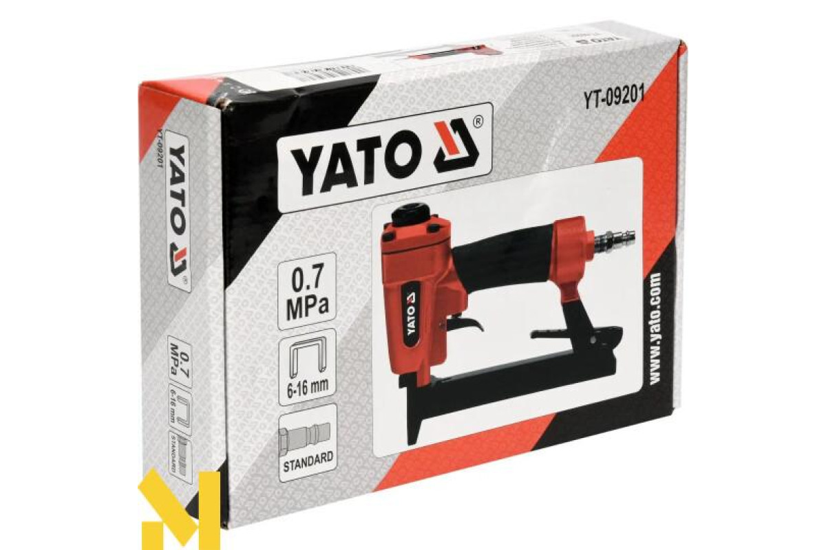 Пневматичний степлер YATO YT-09201 призначений для з'єднання різних матеріалів за допомогою скоб. Використовується в будівництві, столярних роботах, у сфері меблевого виробництва, під час опоряджувальних робіт.