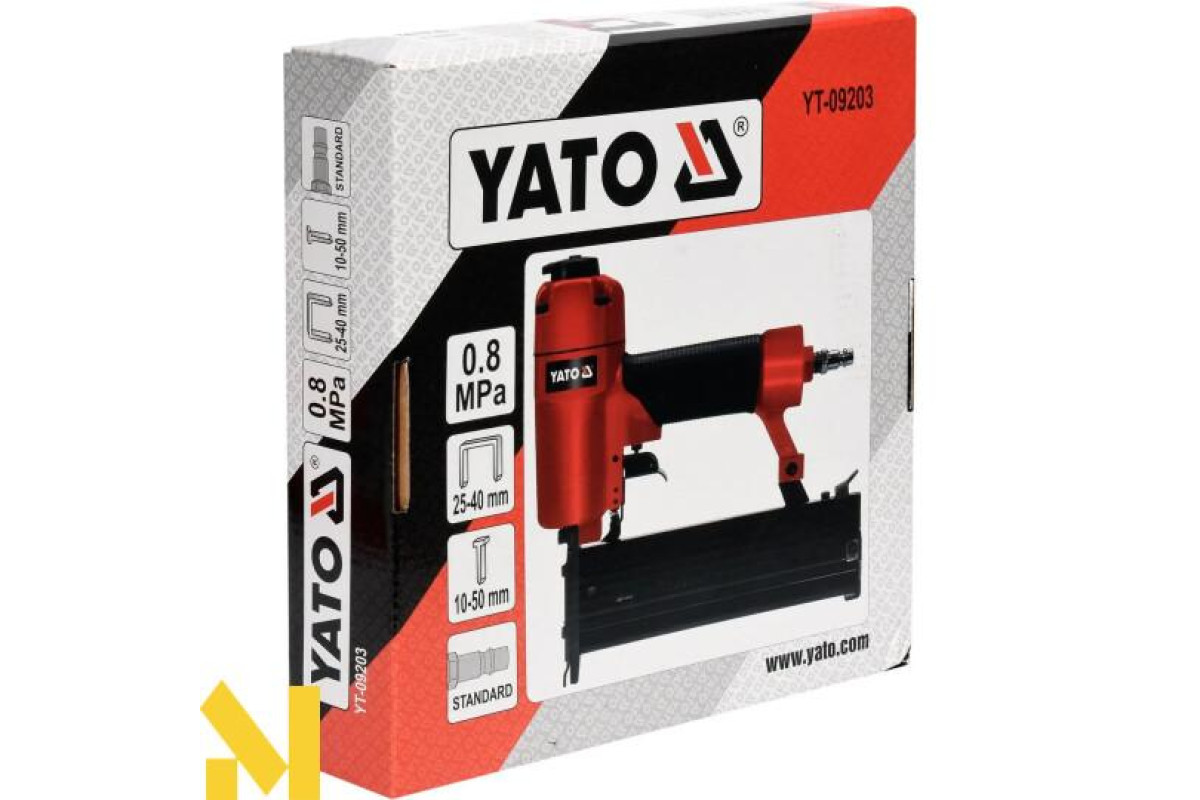 Комбінований пневматичний степлер YATO YT-09203 призначений для з'єднання різних матеріалів за допомогою скоб і цвяхів. Використовується в будівництві, столярних роботах, у сфері меблевого виробництва, під час опоряджувальних робіт.