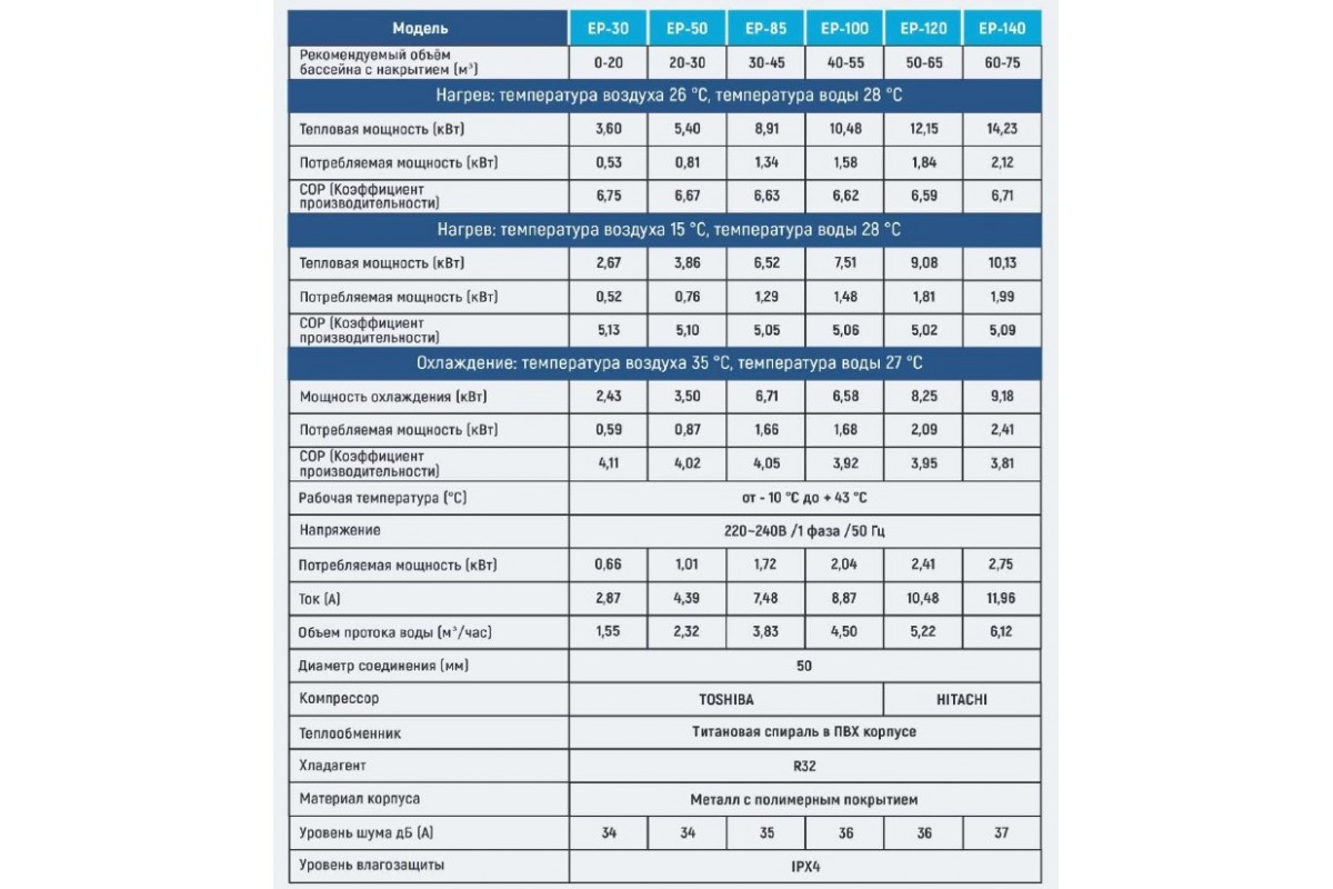 | Рекомендований об'єм басейну з накриттям, м3: | 30-45 |