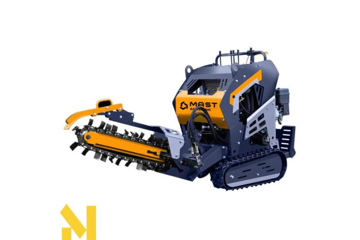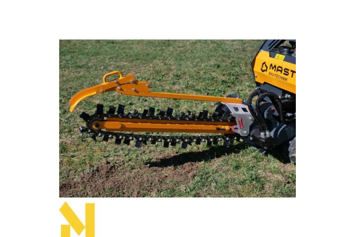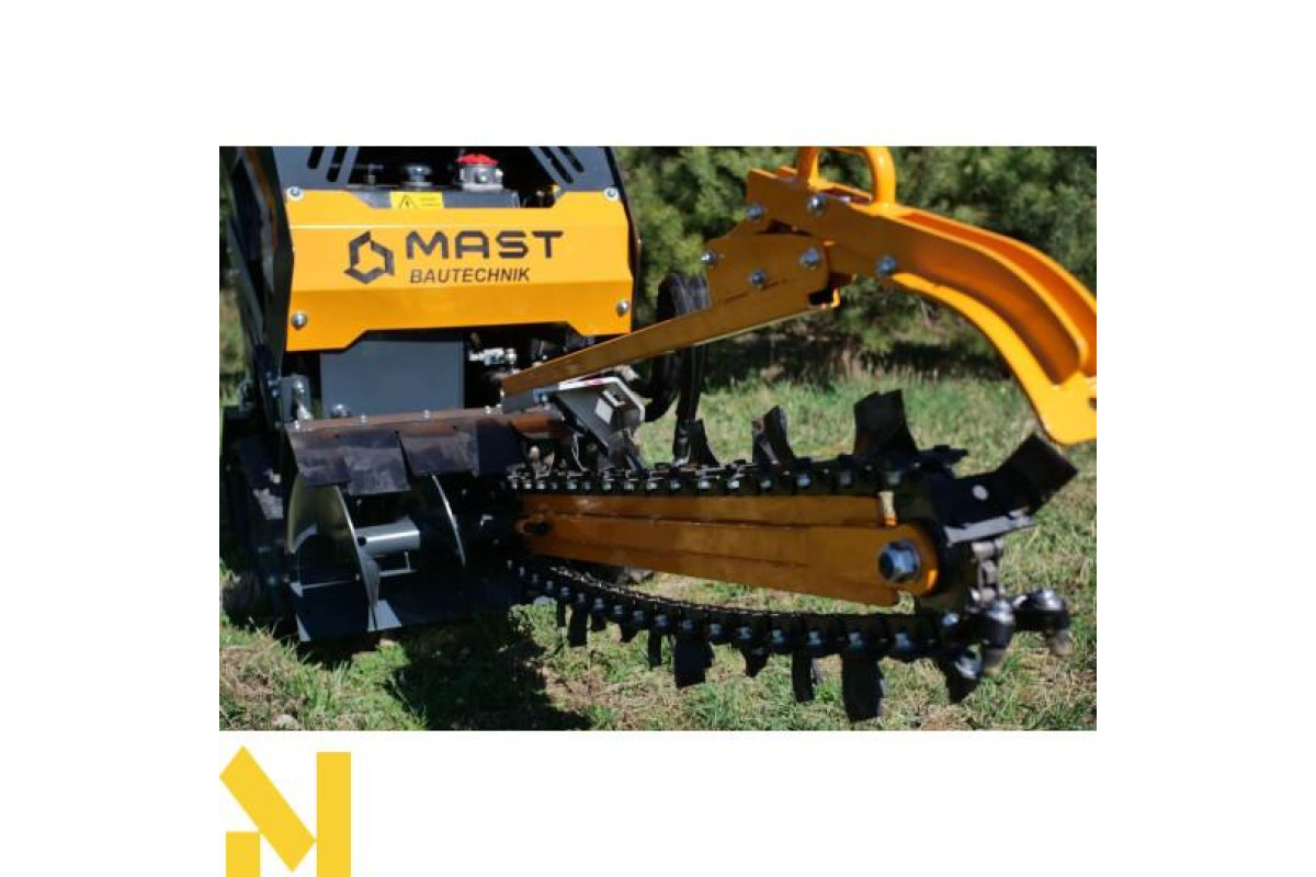 Траншеєкопач MAST Bautechnik MT-TR-100PRO з гусеничним ходом використовується для копання траншей під прокладання кабелів і трубопроводів й інших призначень. За рахунок високої стійкості особливо ефективний на нерівних і слизьких поверхнях, піску і м’яких грунтах. Оснащений ланцюгом з 25 твердосплавними лезами і 19 зубами та регулюванням швидкості обертання від 0 до 550 об/хв, що дає змогу якісно виконувати завдання різної складності. Завдяки витривалому чотиритактному бензиновому двигуну RATO R500-V потужністю 12,5 кВт траншеєкопач не втрачає продуктивності навіть при високих навантаженнях. Глибина копання плавно регулюється від 0 до 100 см за допомогою гідравліки.