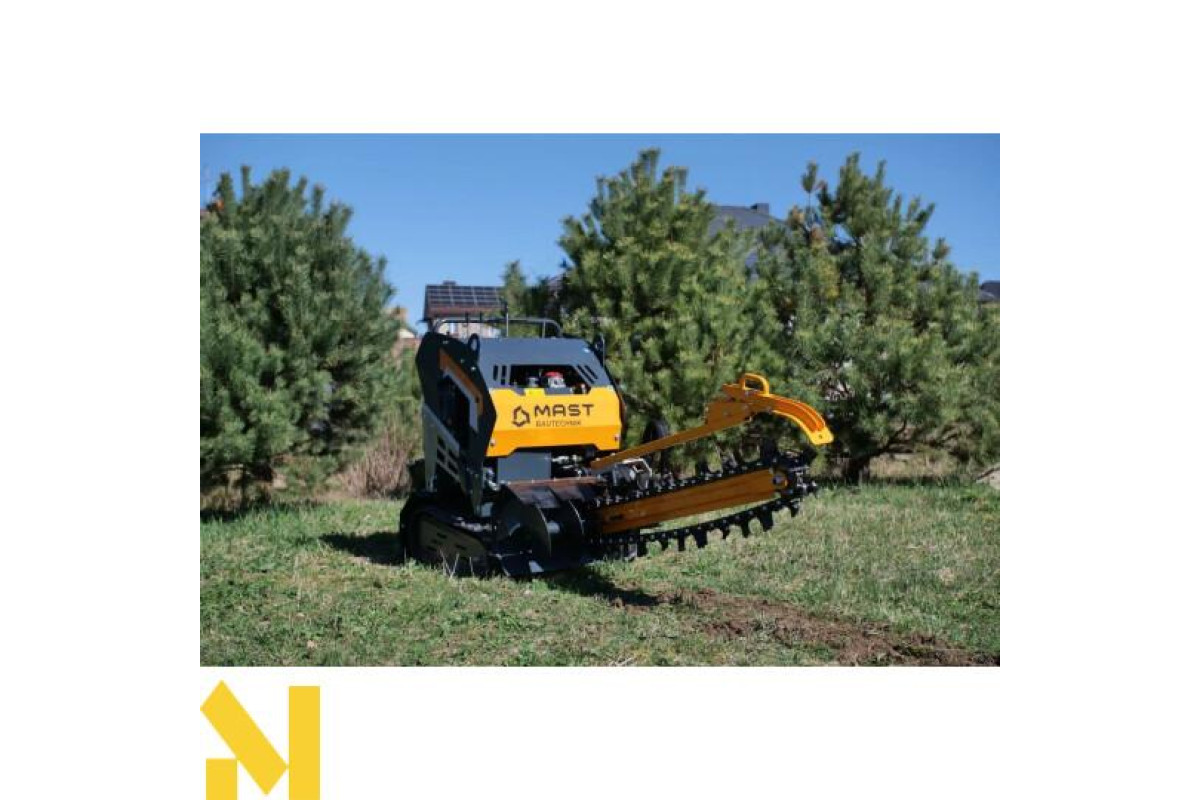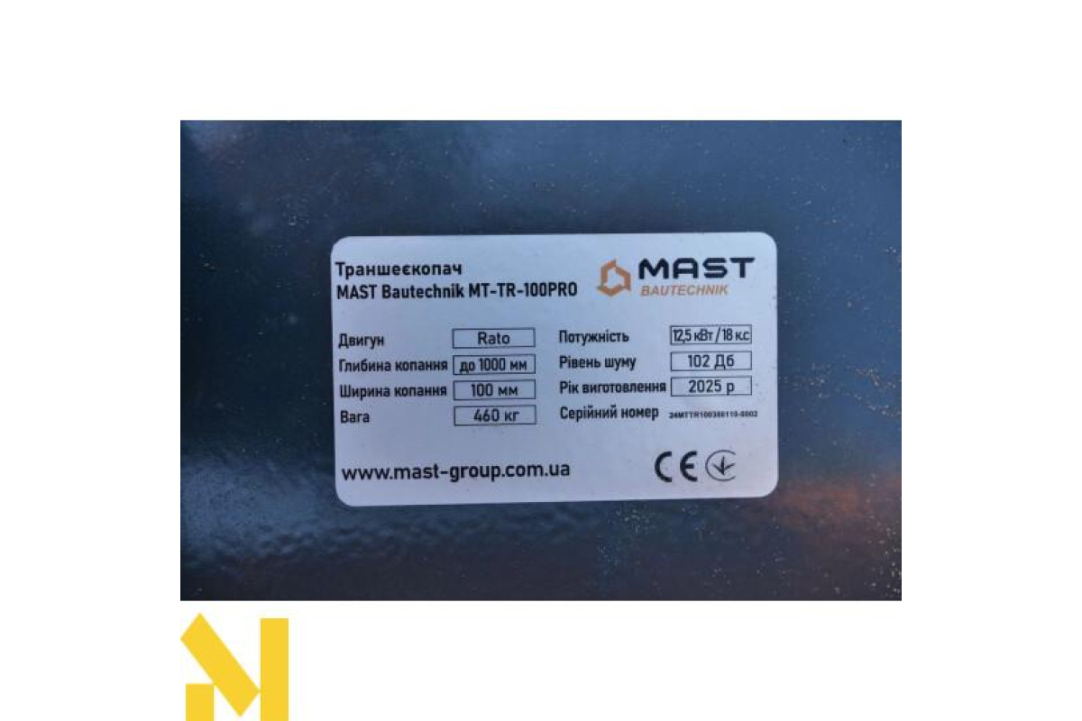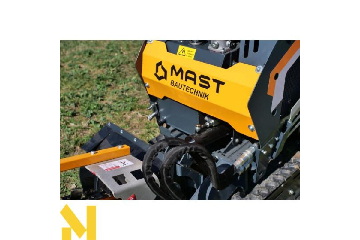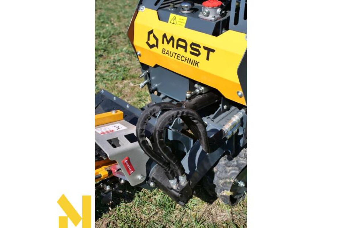 Траншеєкопач MAST Bautechnik MT-TR-100PRO з гусеничним ходом використовується для копання траншей під прокладання кабелів і трубопроводів й інших призначень. За рахунок високої стійкості особливо ефективний на нерівних і слизьких поверхнях, піску і м’яких грунтах. Оснащений ланцюгом з 25 твердосплавними лезами і 19 зубами та регулюванням швидкості обертання від 0 до 550 об/хв, що дає змогу якісно виконувати завдання різної складності. Завдяки витривалому чотиритактному бензиновому двигуну RATO R500-V потужністю 12,5 кВт траншеєкопач не втрачає продуктивності навіть при високих навантаженнях. Глибина копання плавно регулюється від 0 до 100 см за допомогою гідравліки.