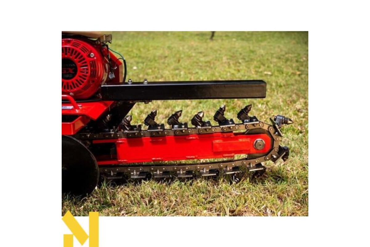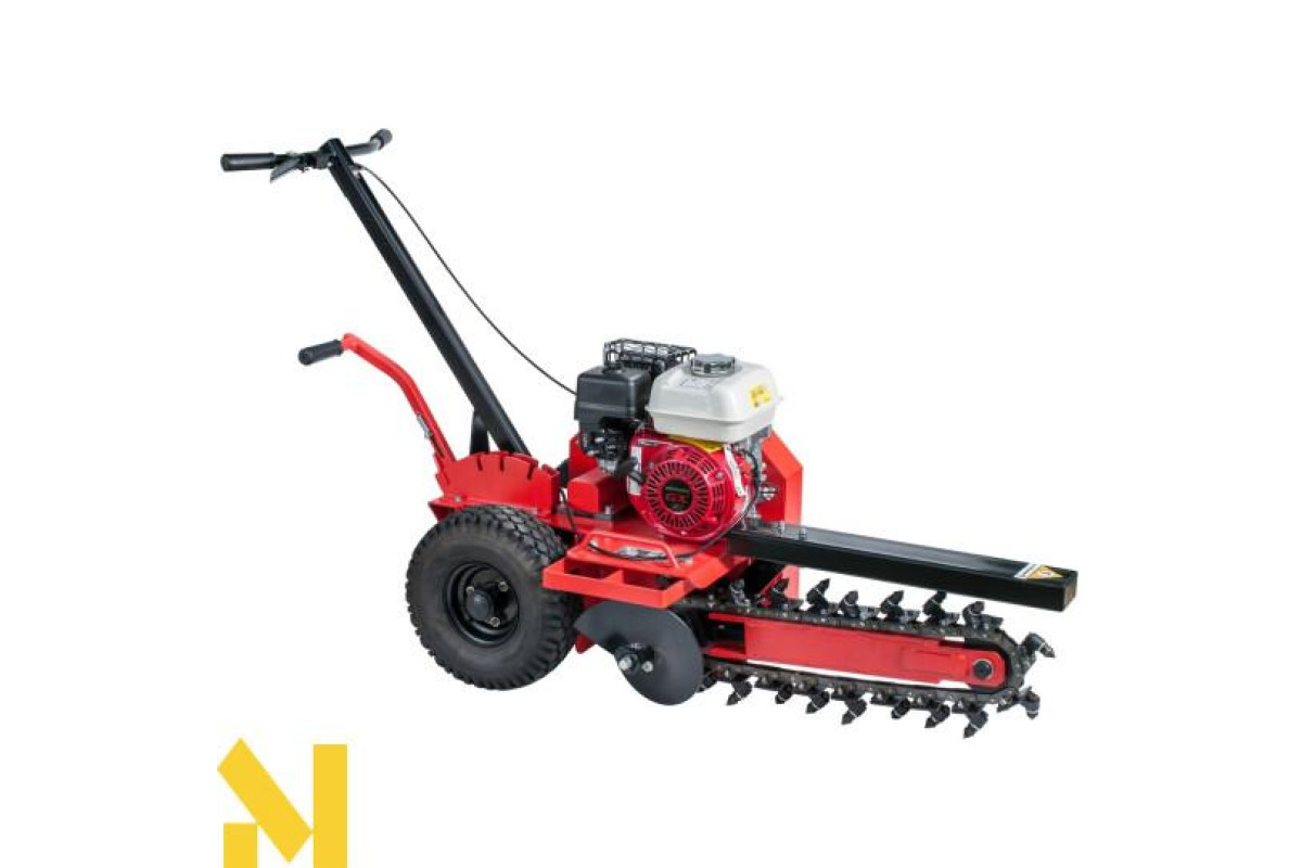 Ланцюговий траншеєкопач з приводом – це дуже потужна машина для роботи в ущільненому ґрунті, який важко копати вручну. Він легко справляється з важкою місцевістю завдяки 4-тактному двигуну Honda GX160 потужністю 4,9 к.с. та максимальним крутним моментом 10,3 Нм.