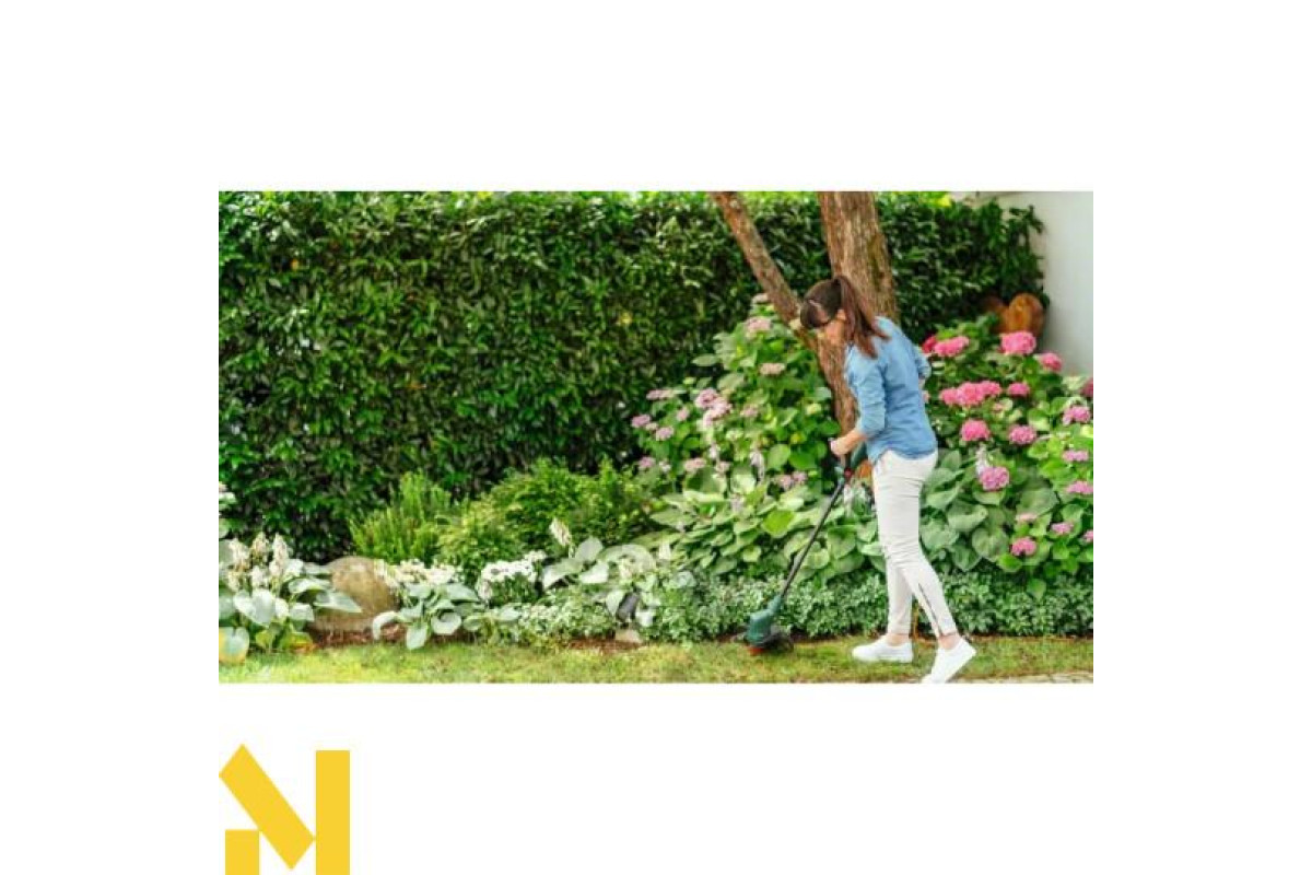 Акумуляторний триммер Bosch EasyGrassCut 18V-26 06008C1C03 використовується для догляду за газоном.