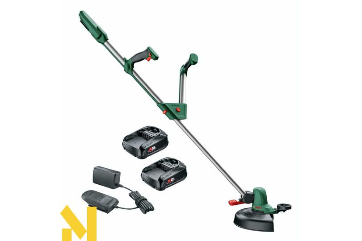 Тример Bosch UniversalGrassCut 18-260 06008C1D05 розроблений для полегшення догляду за газоном, оснащений ергономічною V-подібною ручкою з телескопічним регулюванням висоти, що дозволяє працювати з комфортом та зберігати природну позу.